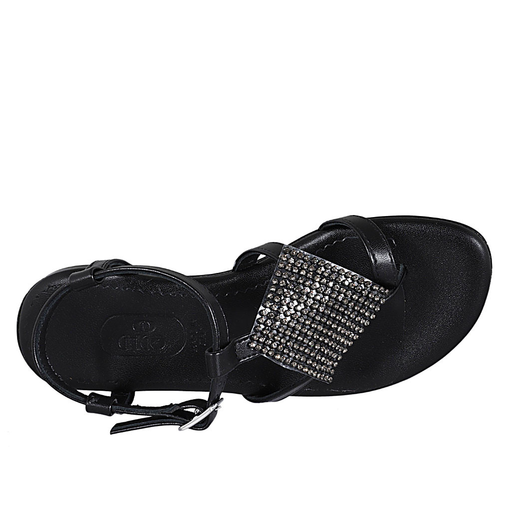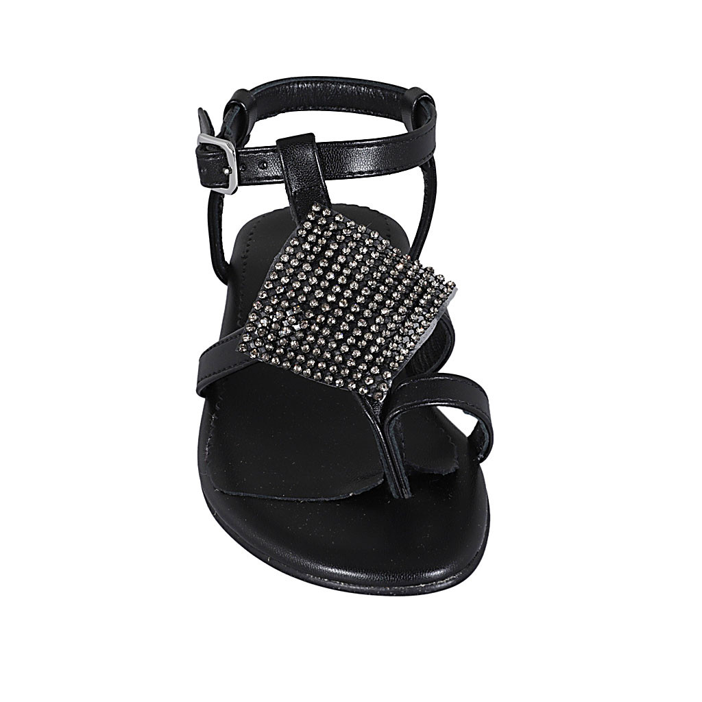 Damenzehensandale aus schwarzem Leder mit Strasssteinen und Riem Absatz 2