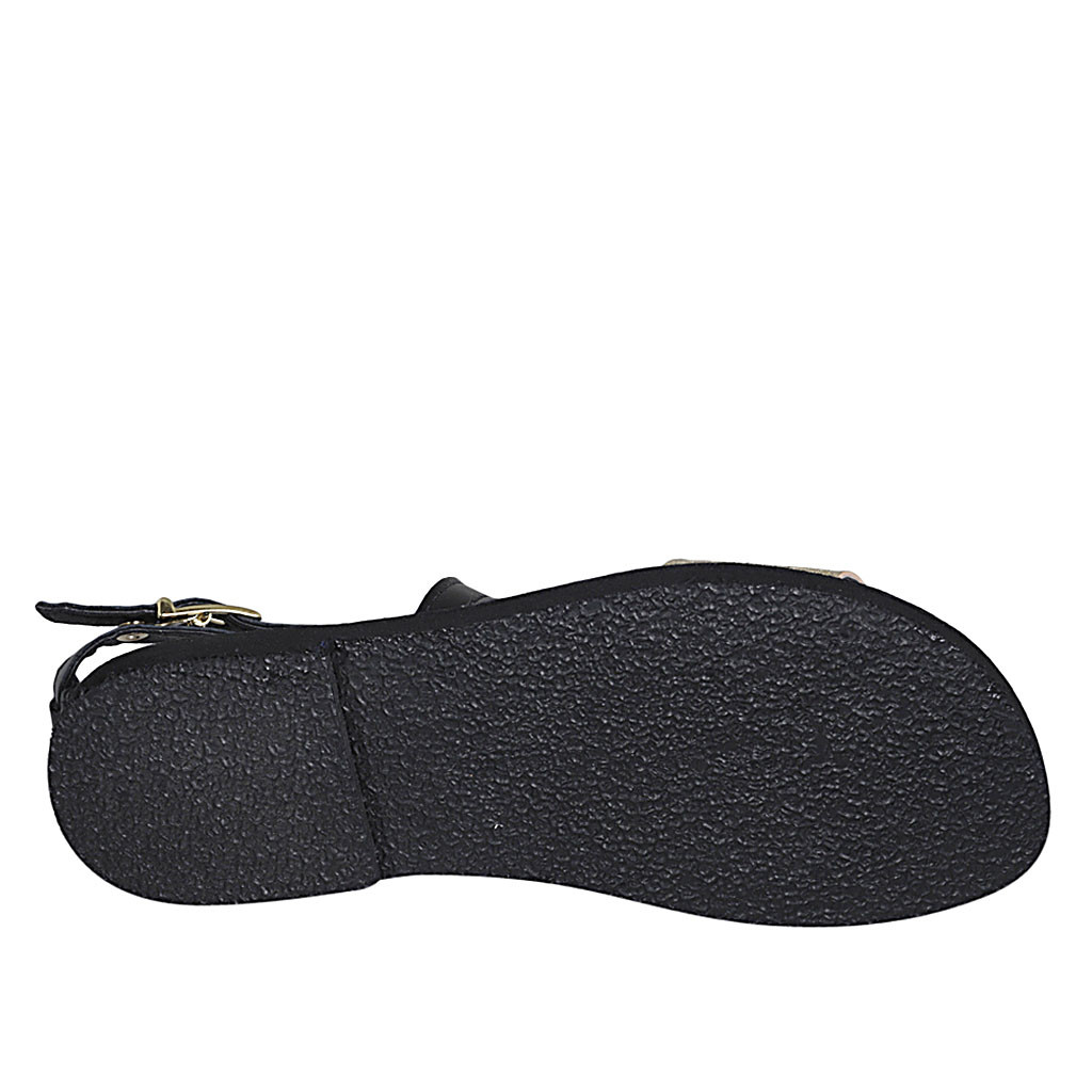 Damensandale mit gekreuztem Riem aus schwarzem und platinlaminiertem Leder Absatz 1