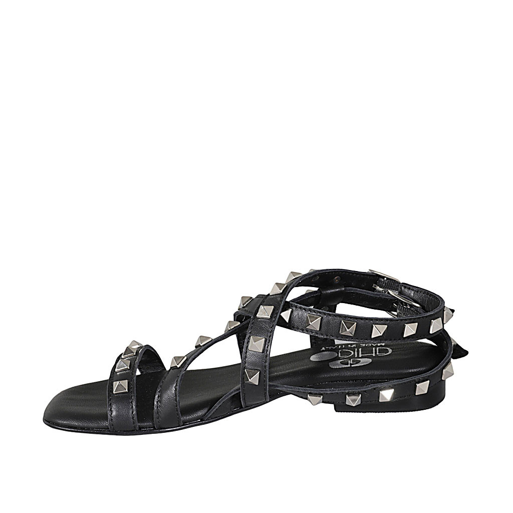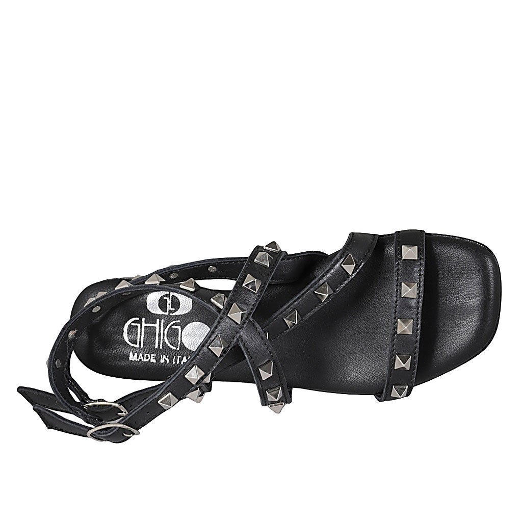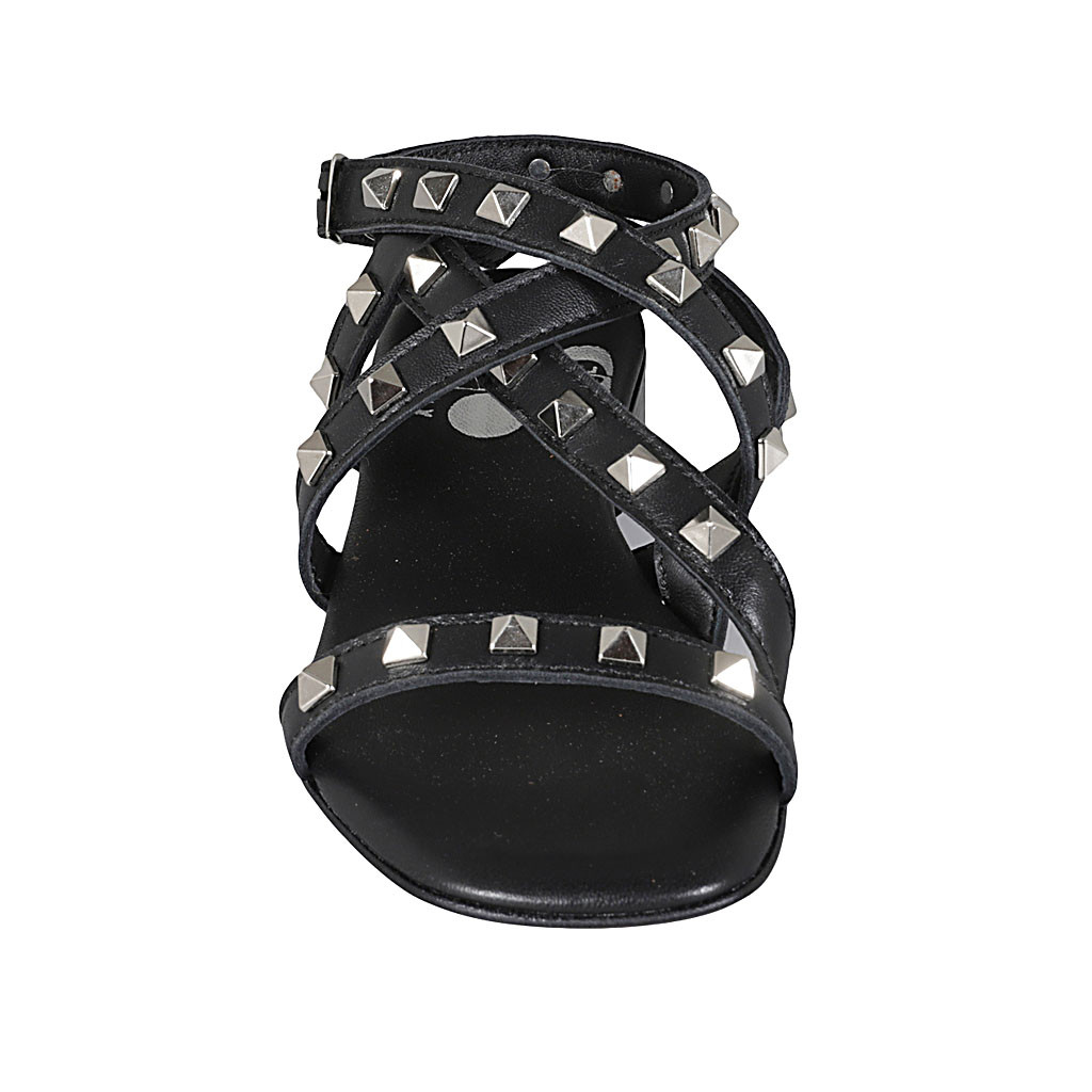 Damensandale mit Riemchen und Nieten aus schwarzem Leder Absatz 2
