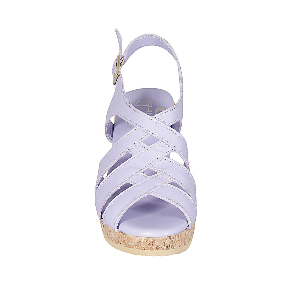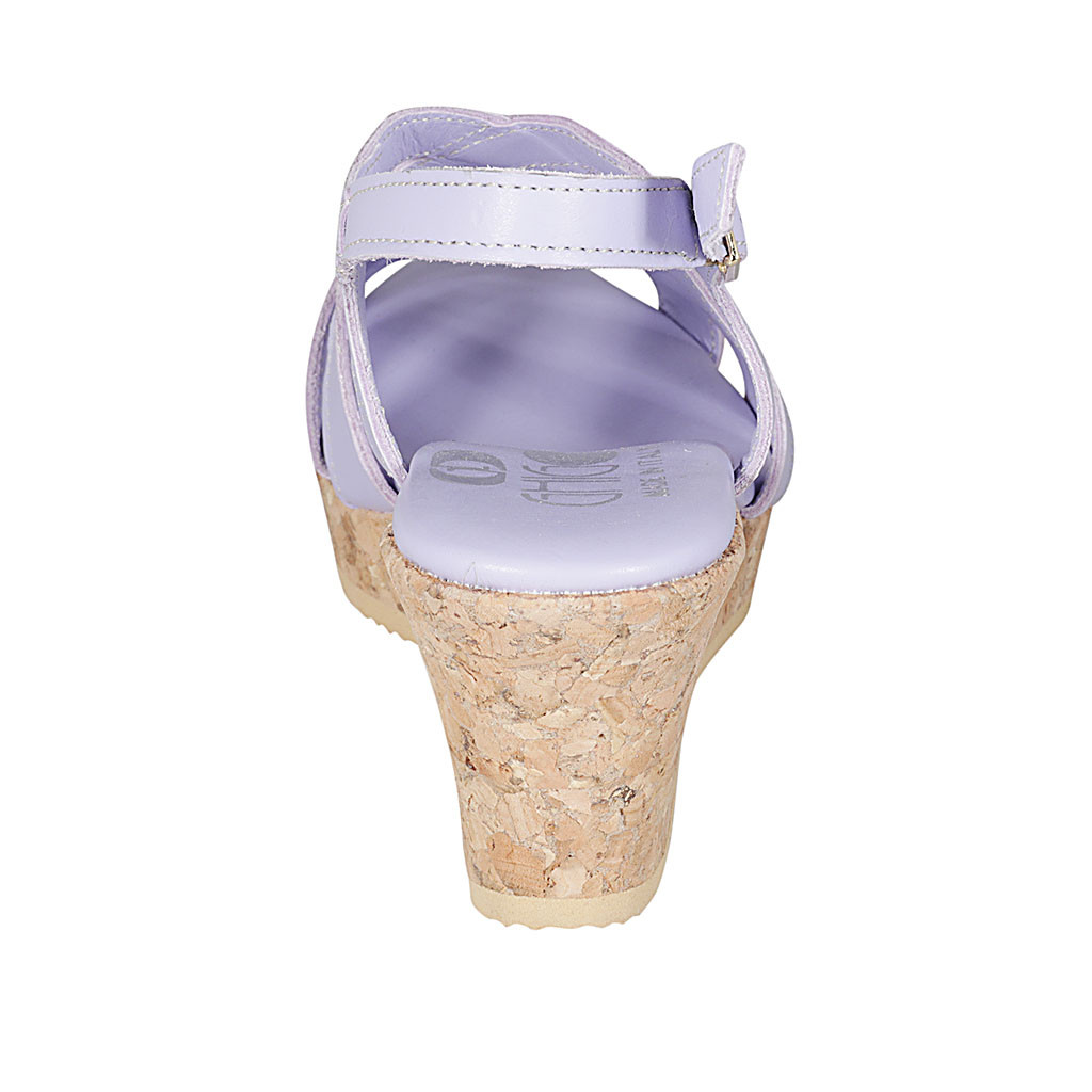 Damensandale aus lilafarbenem Leder mit Plateau und Keilabsatz 7