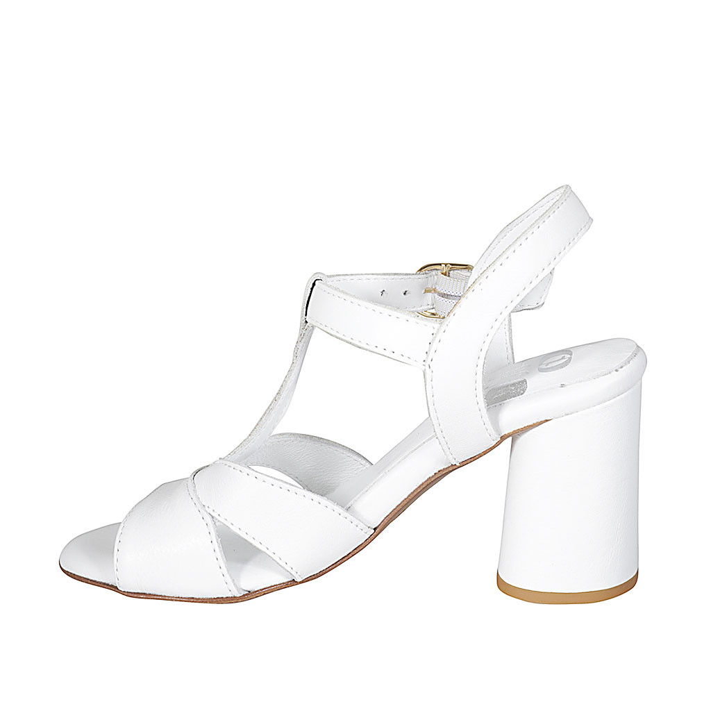 Damensandale mit T-Riem aus weißem Leder Absatz 7