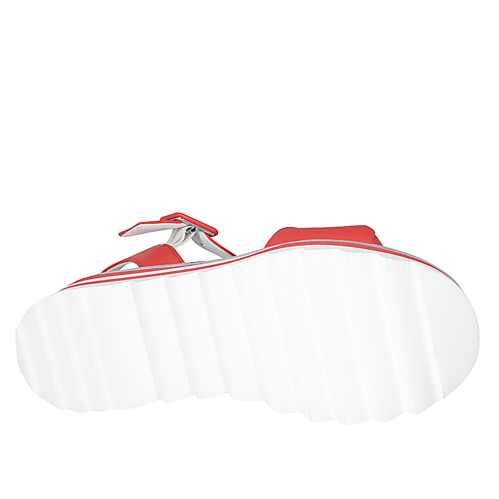 Damenriemchensandale aus blauem Lackleder mit Plateau und Keilabsatz 9