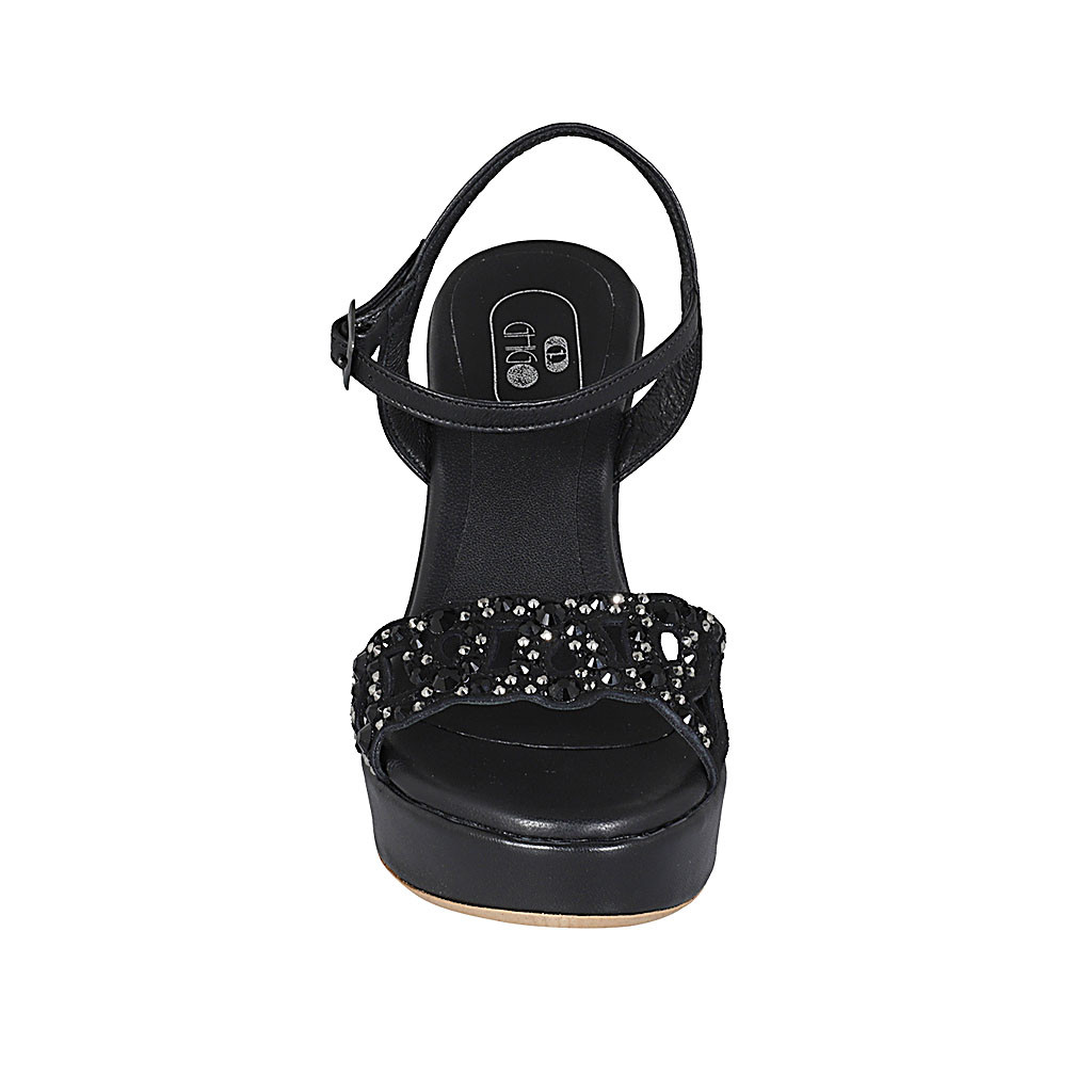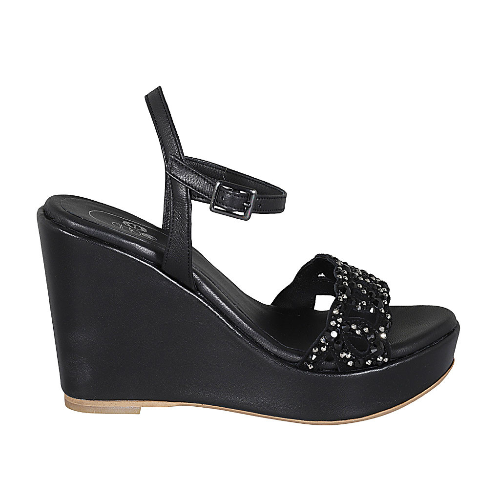 Damenpantolette aus cognacbraunem Leder und beiger Raphia mit Schnalle Absatz 3