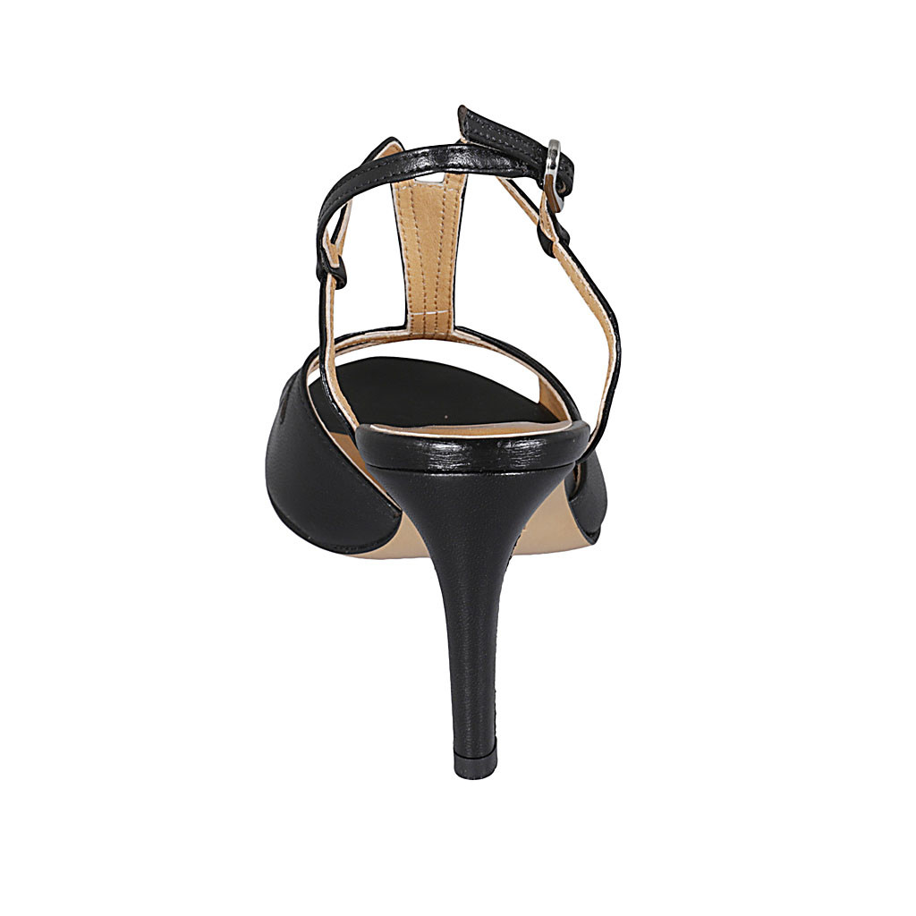 Damenpantoletten aus schwarzem geflochtenem Leder mit Plateau und Keilabsatz 9