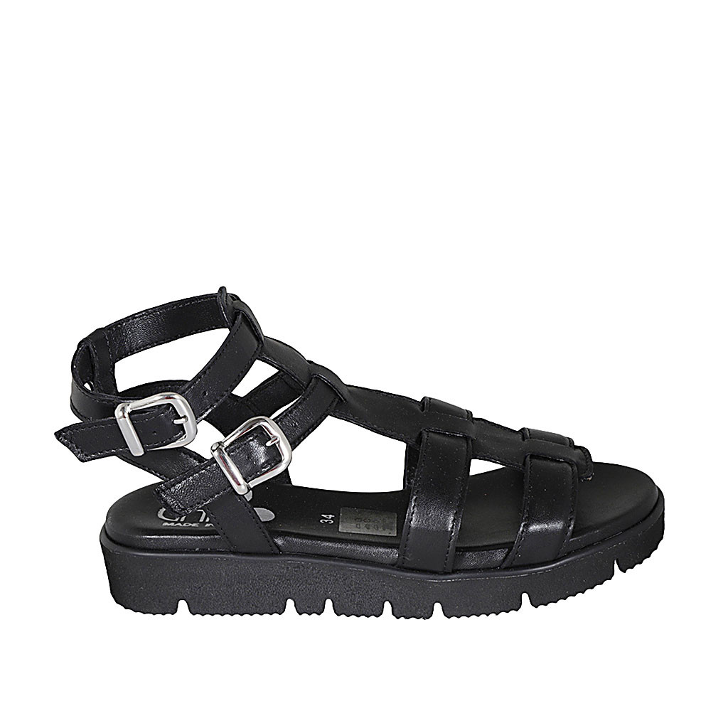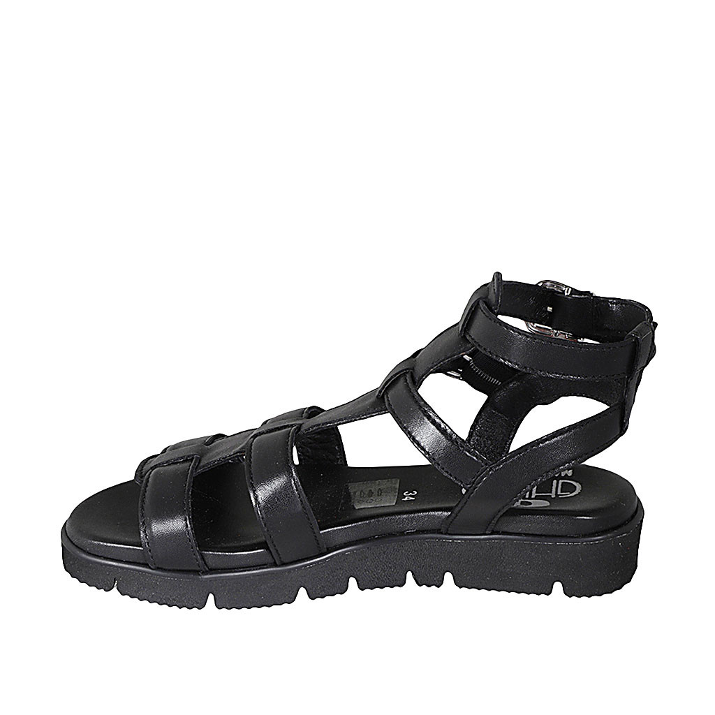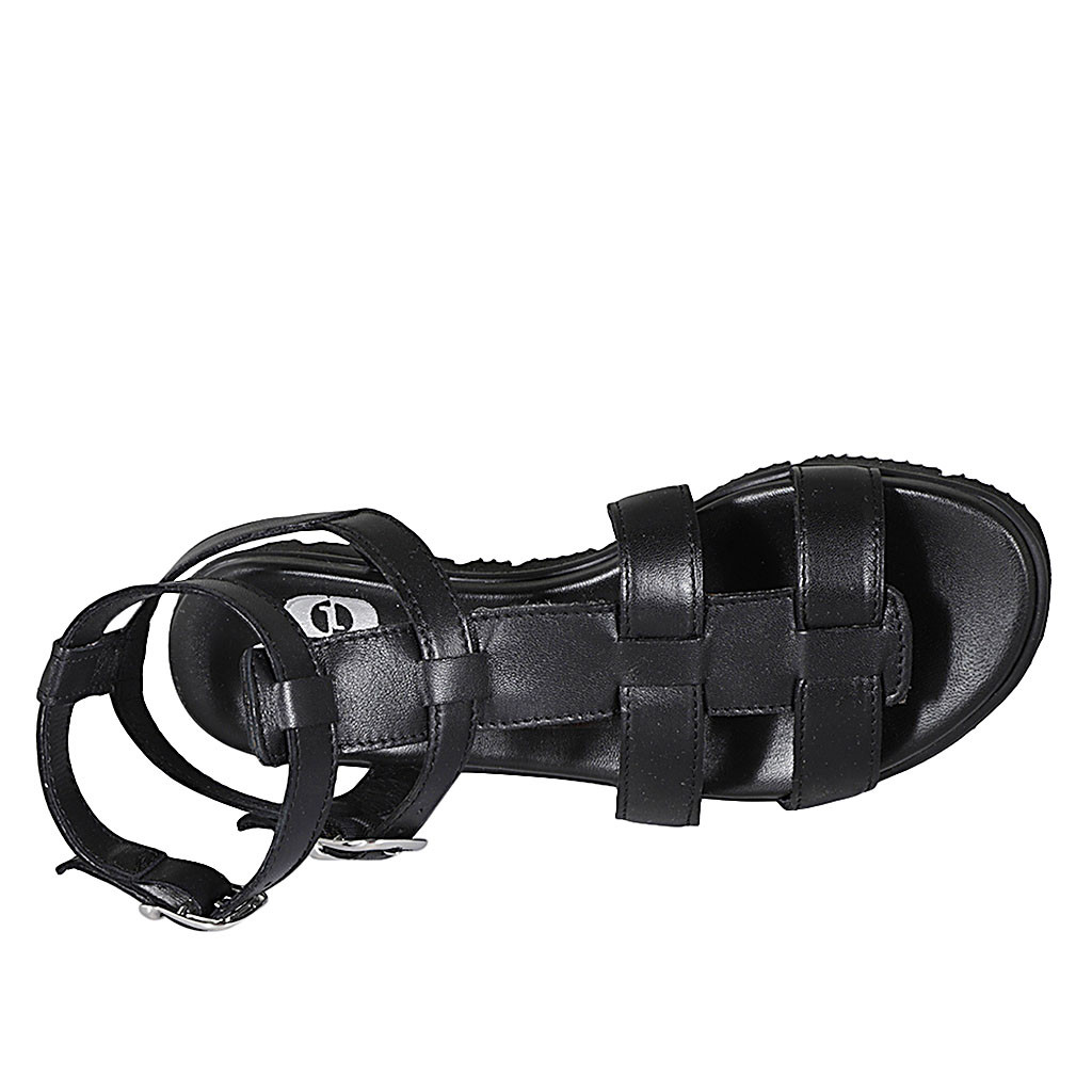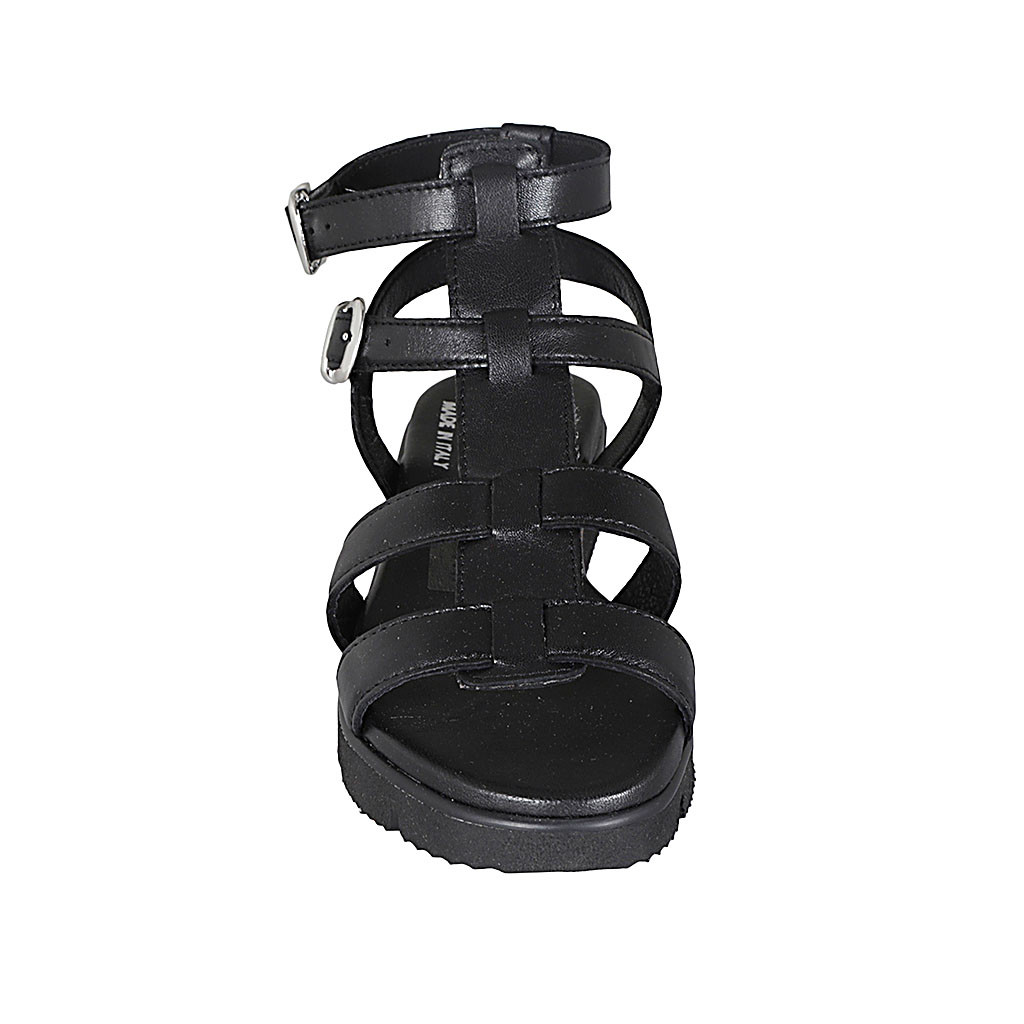 Damensandale mit Riemchen aus schwarzem Leder Keilabsatz 3