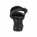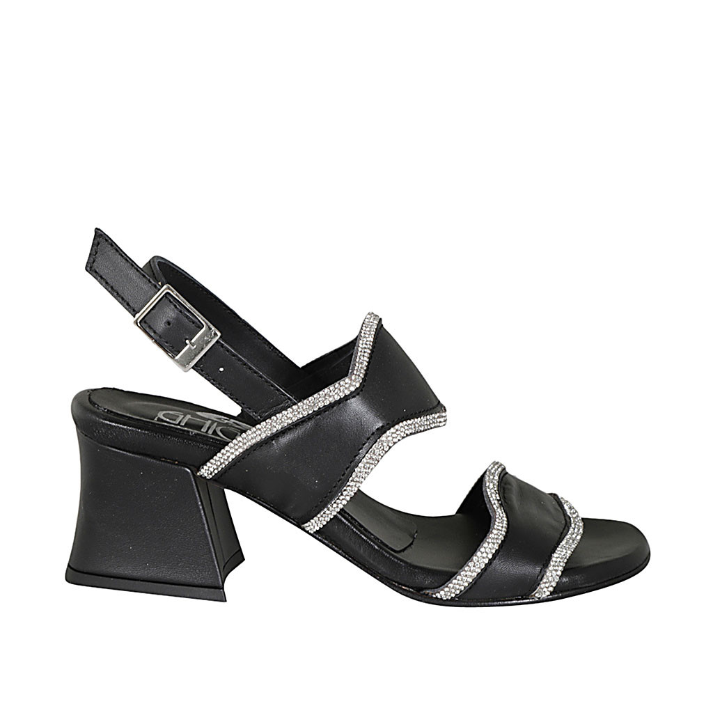 Damensandale aus schwarzem Leder und gedrucktem Leder mit Riem Absatz 7