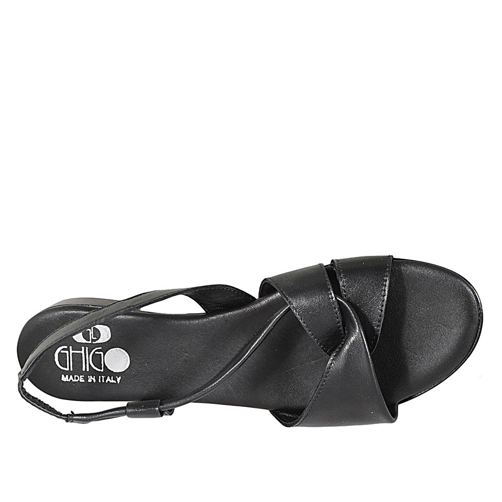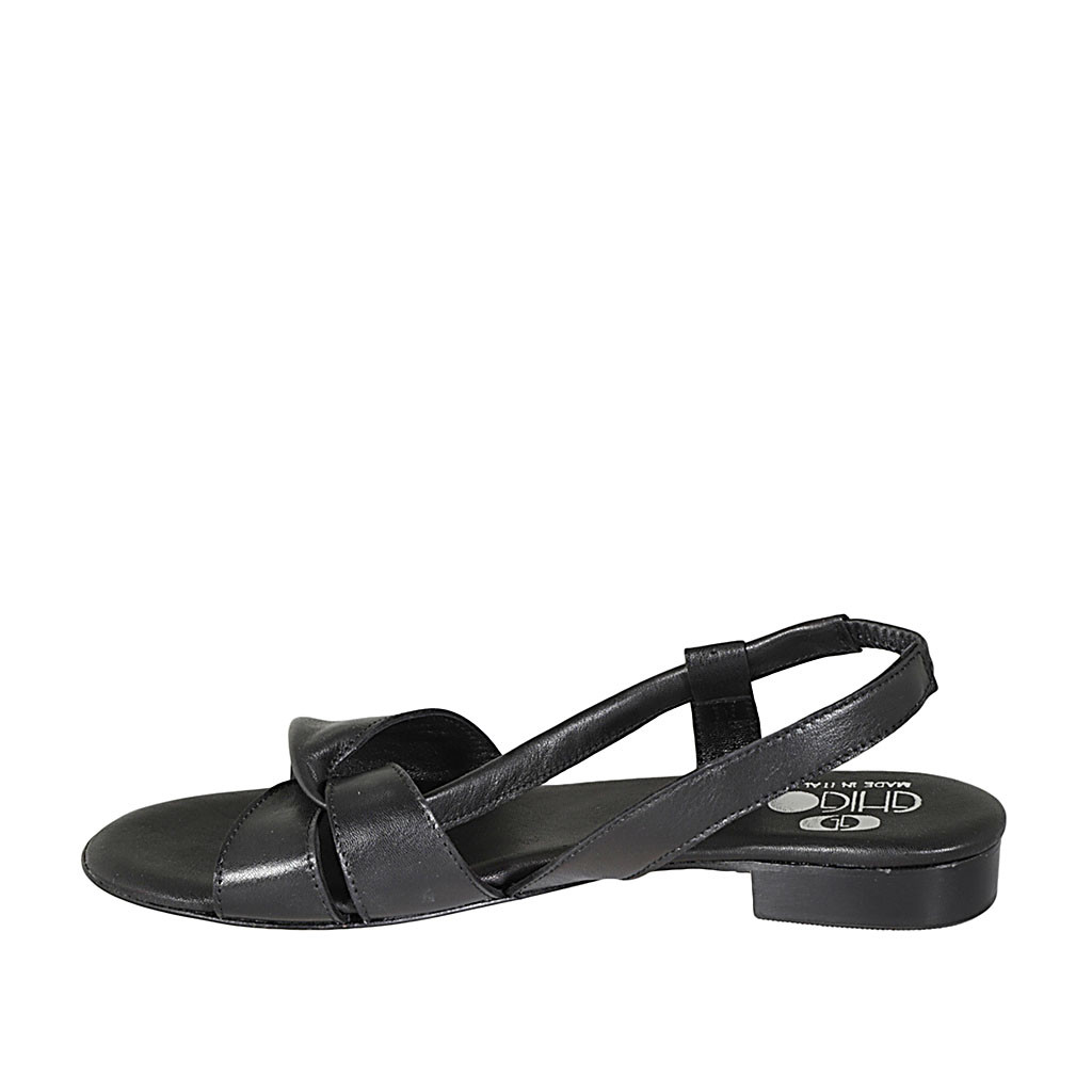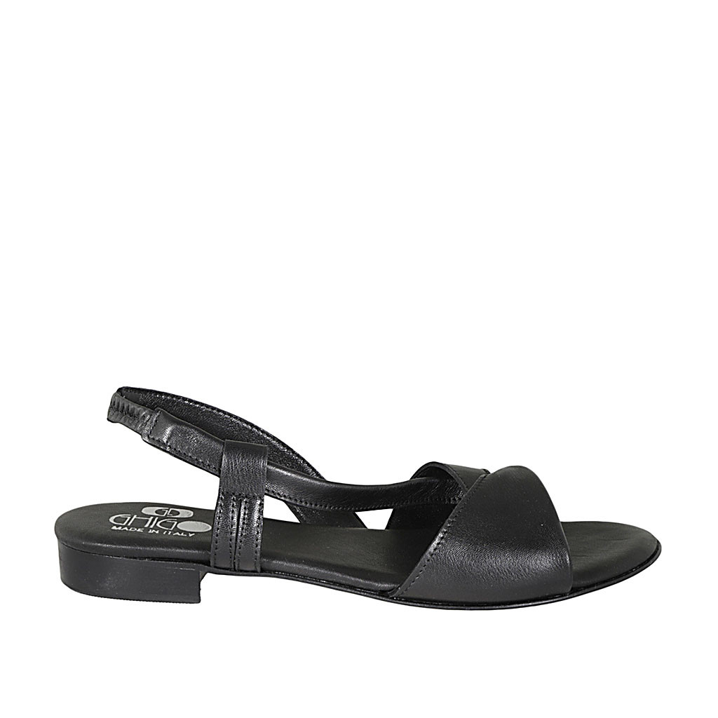 Damensandale mit Gummiband aus schwarzem Leder Absatz 2