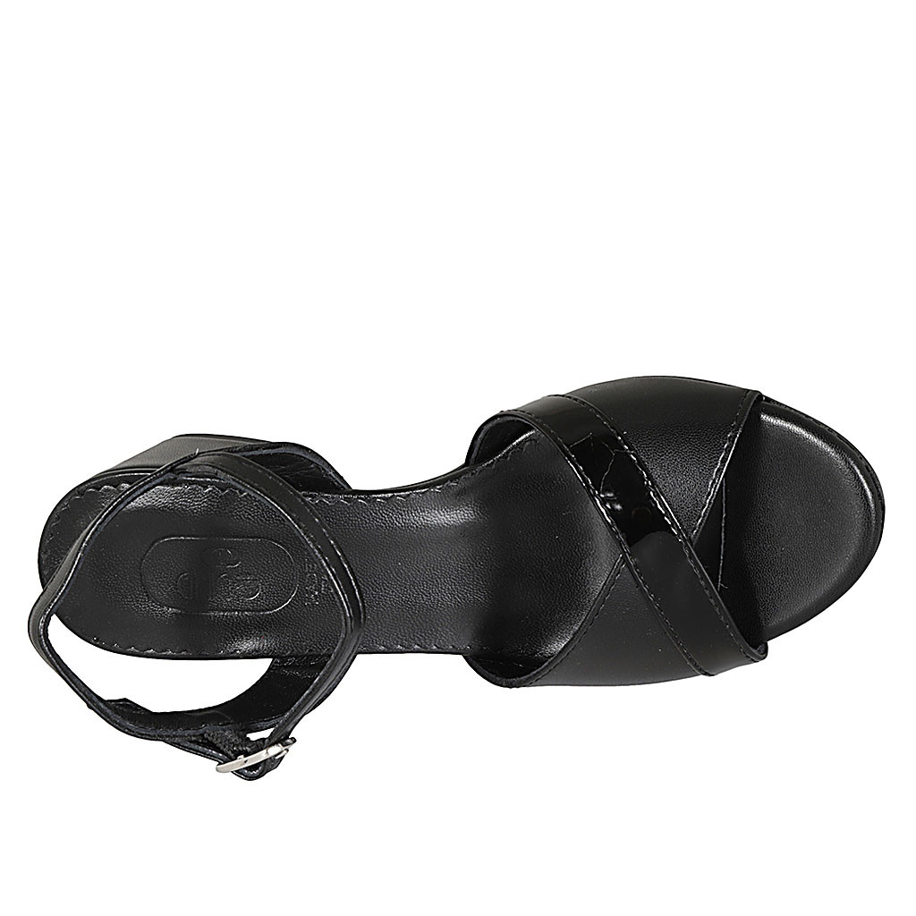 Damensandale mit Knöchelriem aus schwarzem Leder und Lackleder Absatz 5