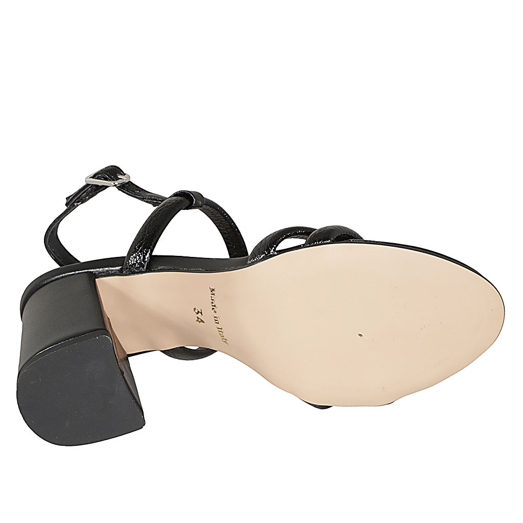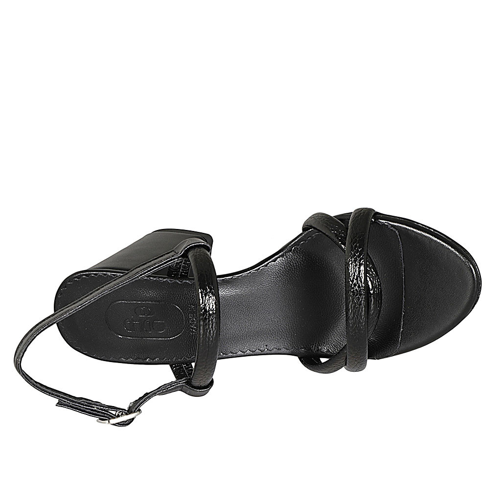 Damensandale aus schwarzem laminiertem Leder Absatz 7