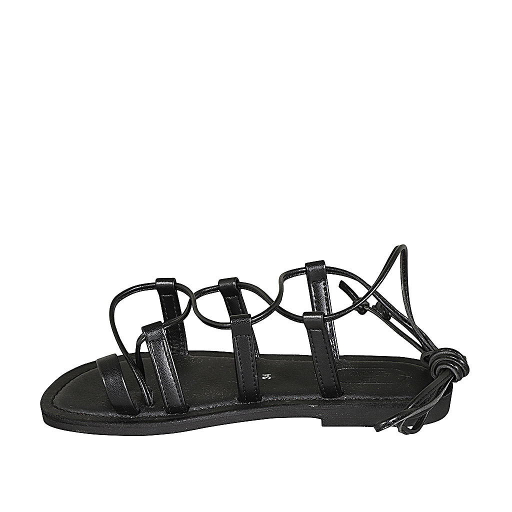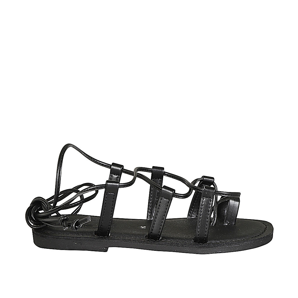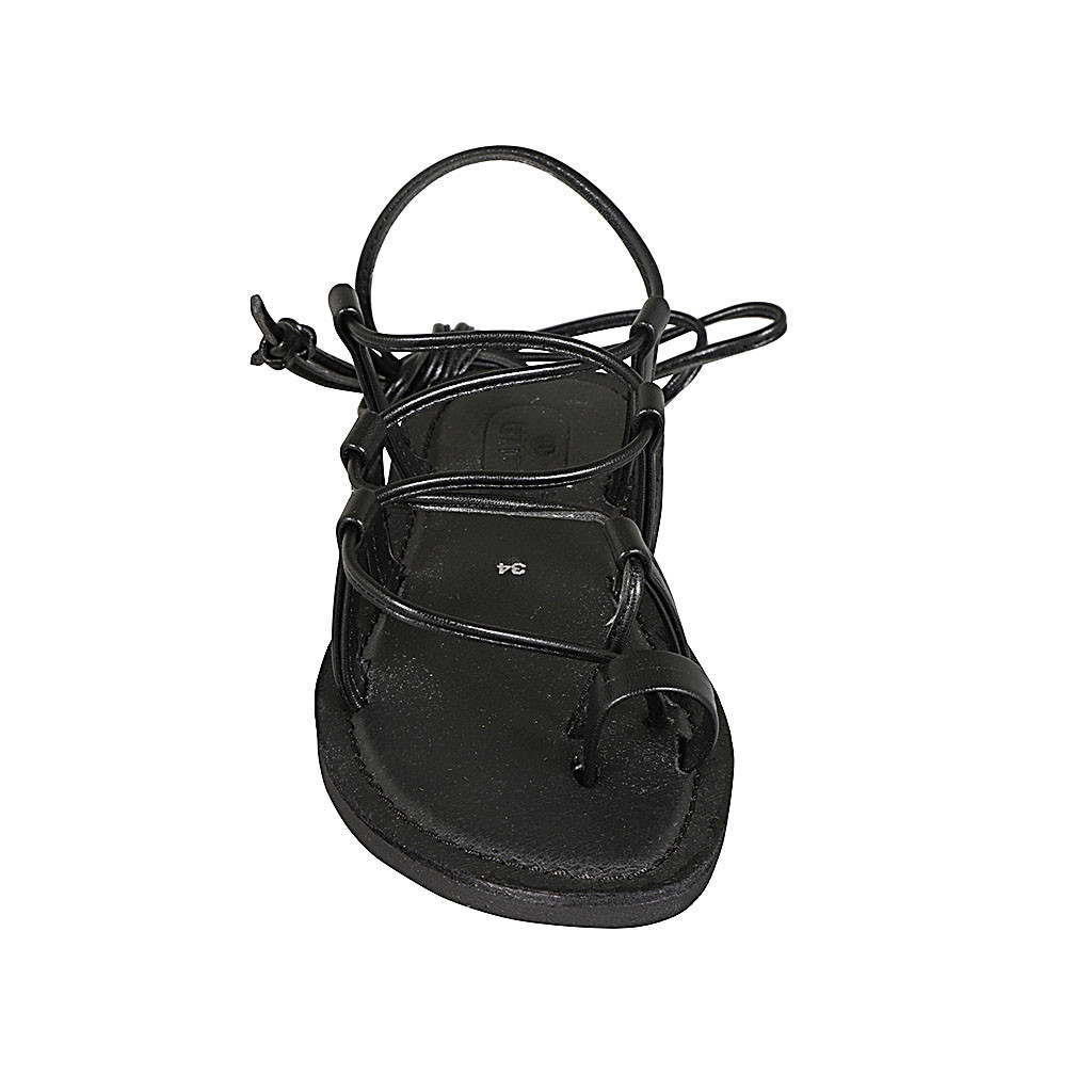 Damenzehensandale im Gladiatorstil aus schwarzfarbigem Leder Absatz 1