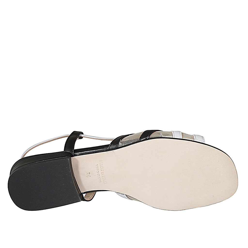 Damensandale aus schwarzem und weißem Leder mit transparentem Stoff und Gummiband Absatz 2