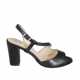 Damensandale mit Riemchen aus schwarzem Leder Keilabsatz 3