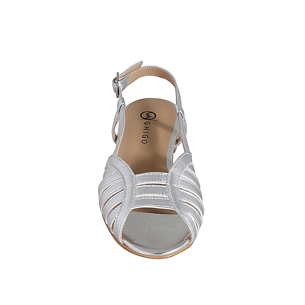 Damensandale aus silberfarbenem laminiertem Leder Absatz 2