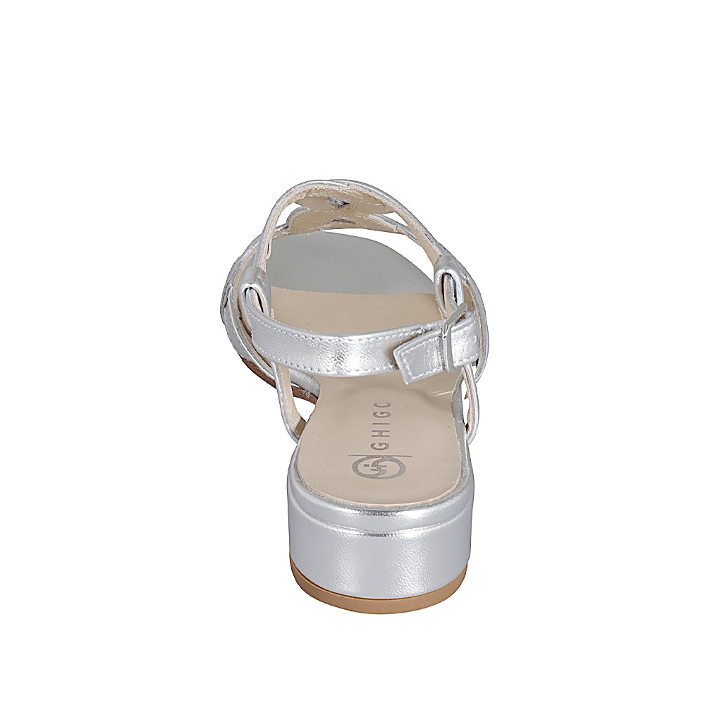 Damensandale aus silberlaminiertem geflochtenem Leder Absatz 3