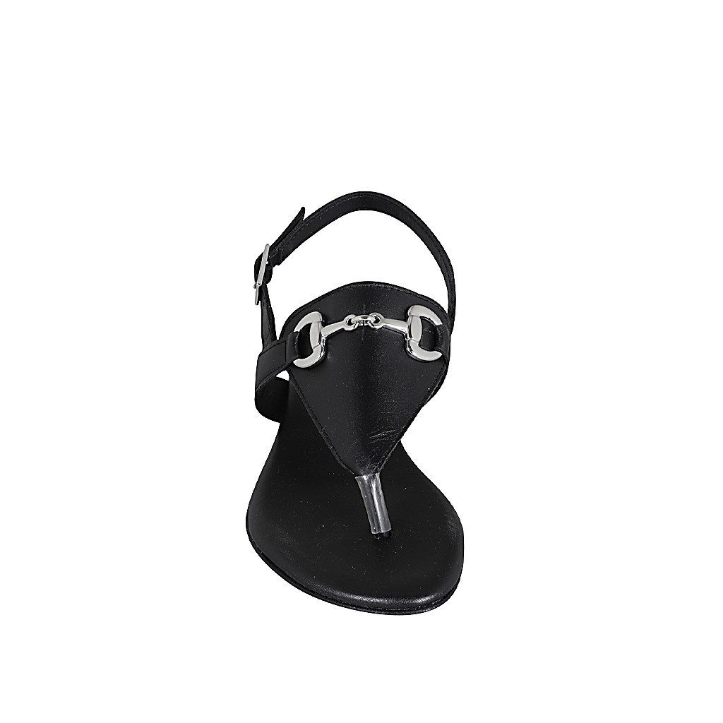 Damenzehensandale aus schwarzem Leder mit Accessoire Absatz 2