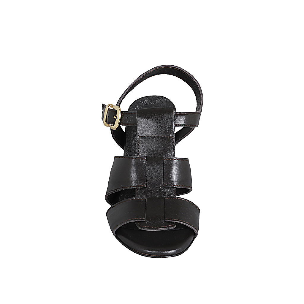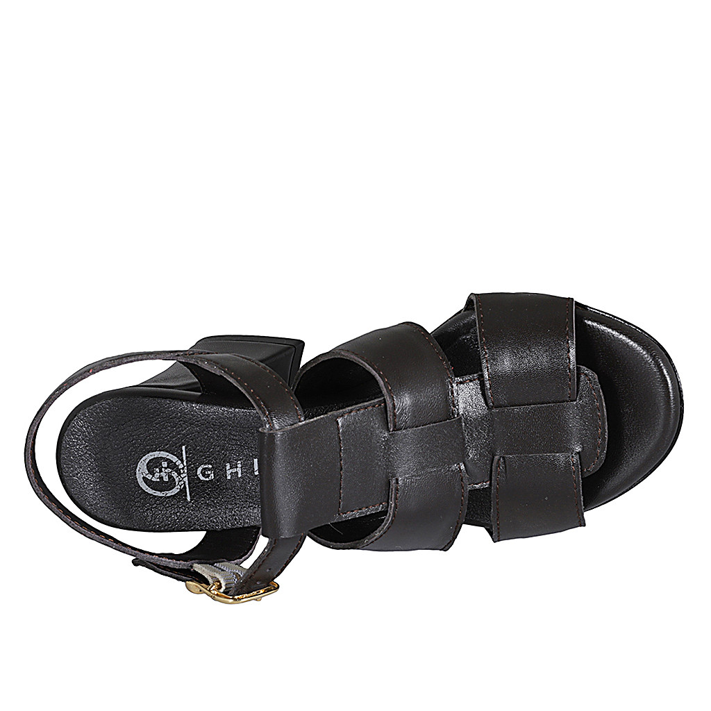 Damenriemsandale aus schwarzem geflochtenem Leder Absatz 7