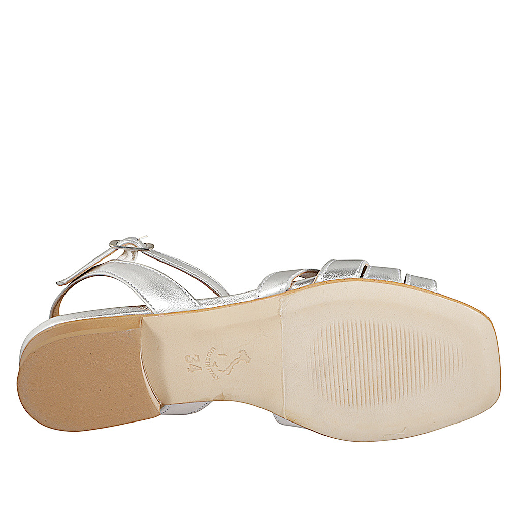 Geschlossene Damenpantoletten mit goldenem Accessoire aus nudefarbenem Leder und Absatz 2