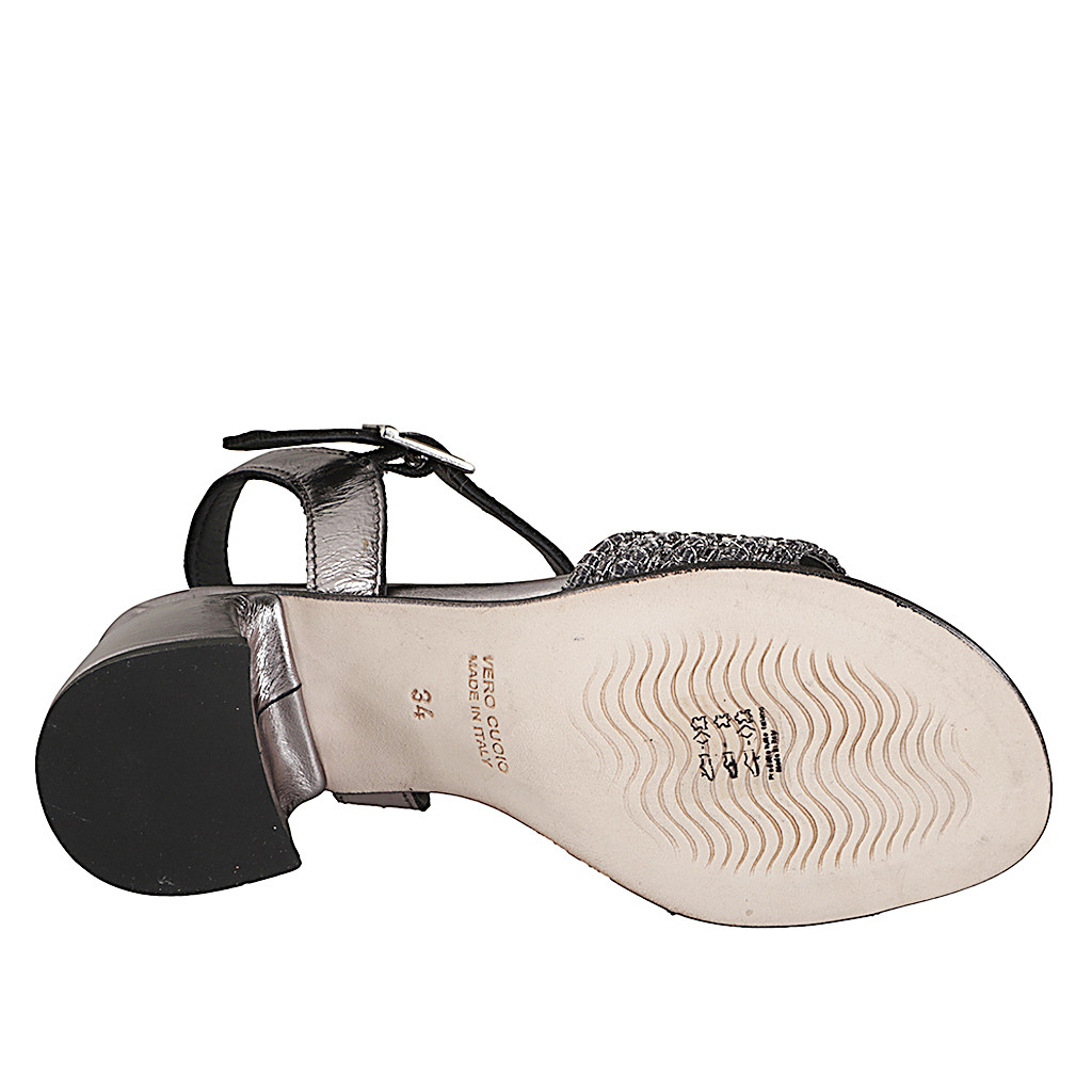 Ballerinaschuh für Damen mit abgerundeter Spitze mit Schleife aus schwarzem Leder und Kappe Absatz 4