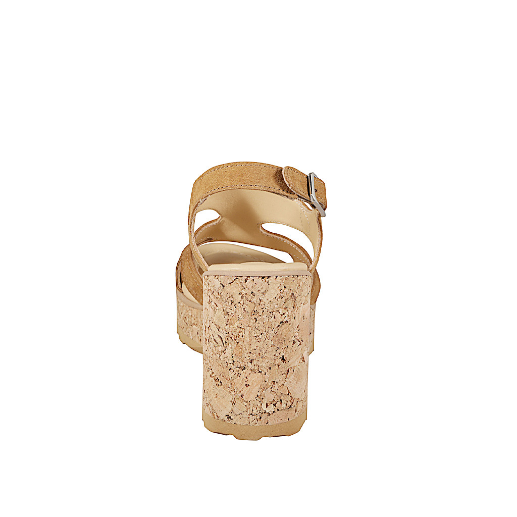 Offener Damenschuh mit quadratischer Spitze und gekreuzten Riemen aus elfenbeinfarbenem Leder Absatz 3