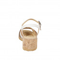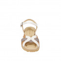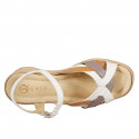 Damenballerina mit T-Steg, aus weißem Leder und Kappe und Ferse aus beigem Leder, mit Absatz 3