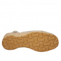 Damensandale mit Innensohle aus Memory-Schaum, aus beigem Wildleder und gedrucktem Leder, mit Korken-Keilabsatz 5