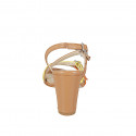 Damensandale mit Riemchen aus beigem Wildleder, laminiertem platinfarbenem Leder und glänzend platinfarbenem Stoff mit Absatz 7