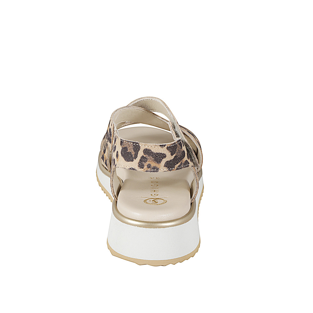 Damensandale mit Gummiband und Klettverschluss aus gemustertem Wildleder, Keilabsatz 3