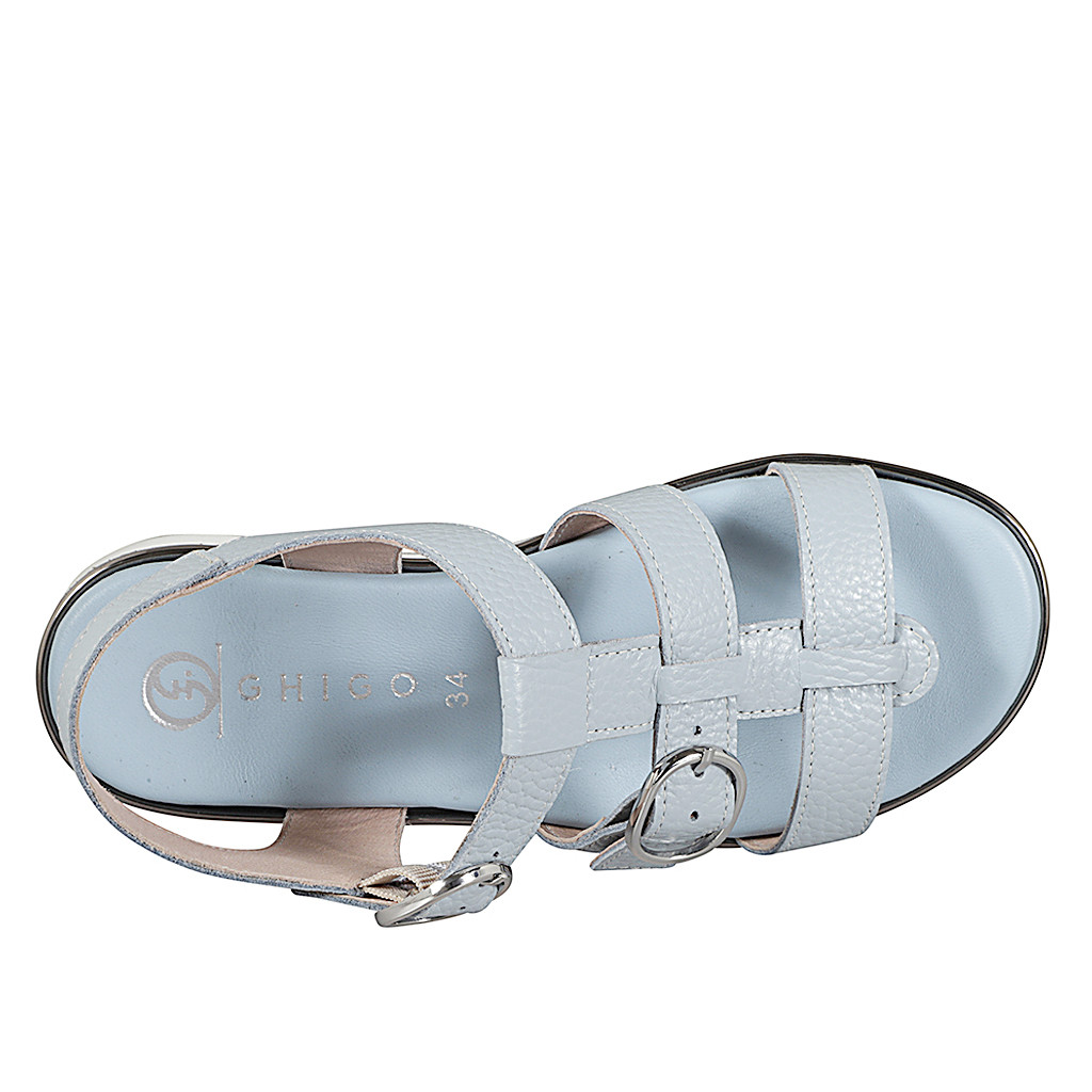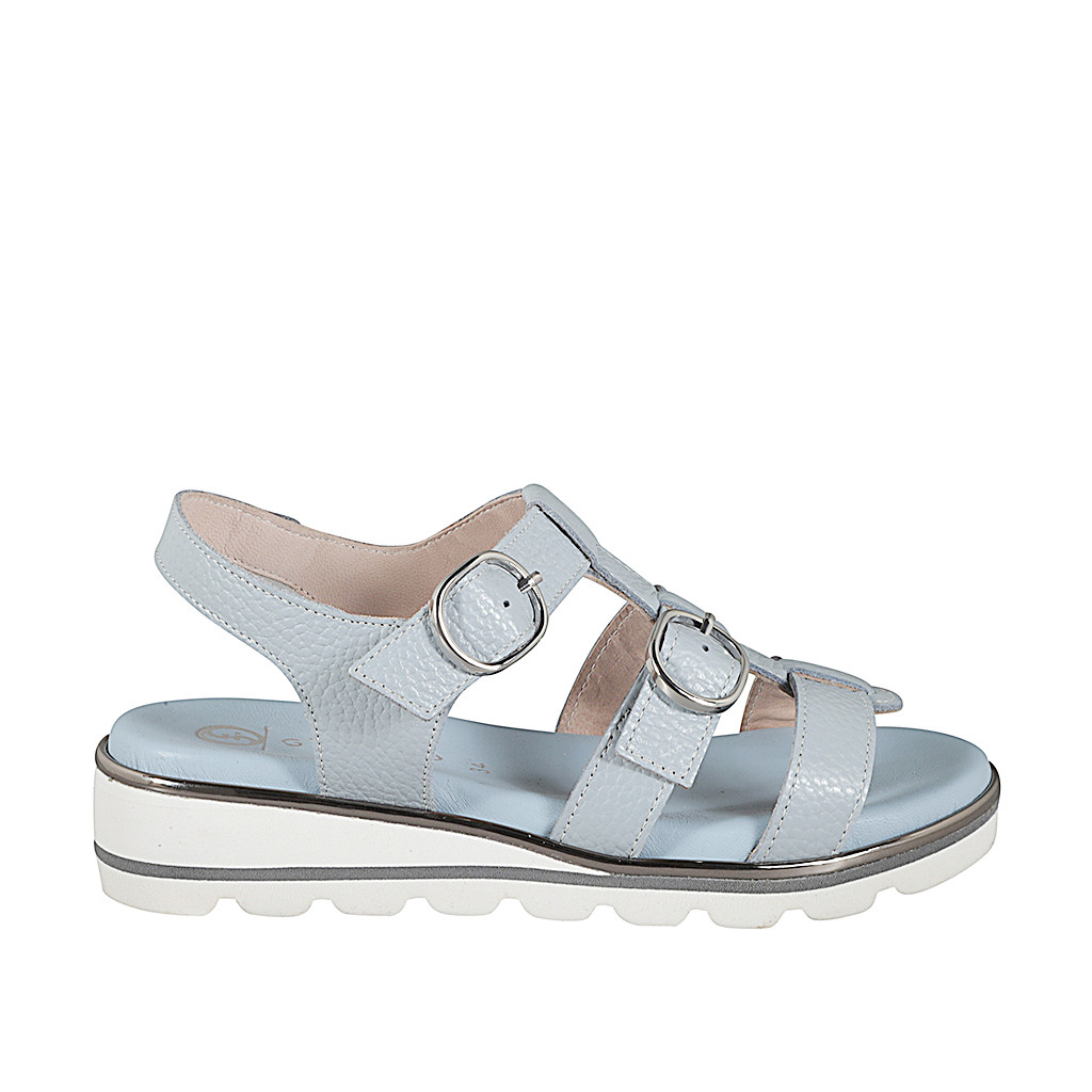 Damensandale mit Leder bedecktem Keilabsatz und Schnalle aus cognacbraunem Leder, Keilabsatz 3