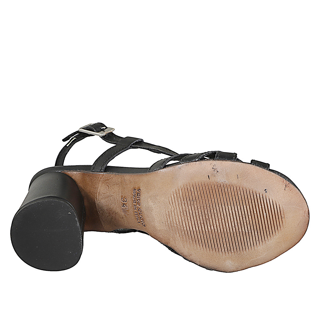 Damensandale mit Riemendesign aus schwarzem Leder mit Absatz 7