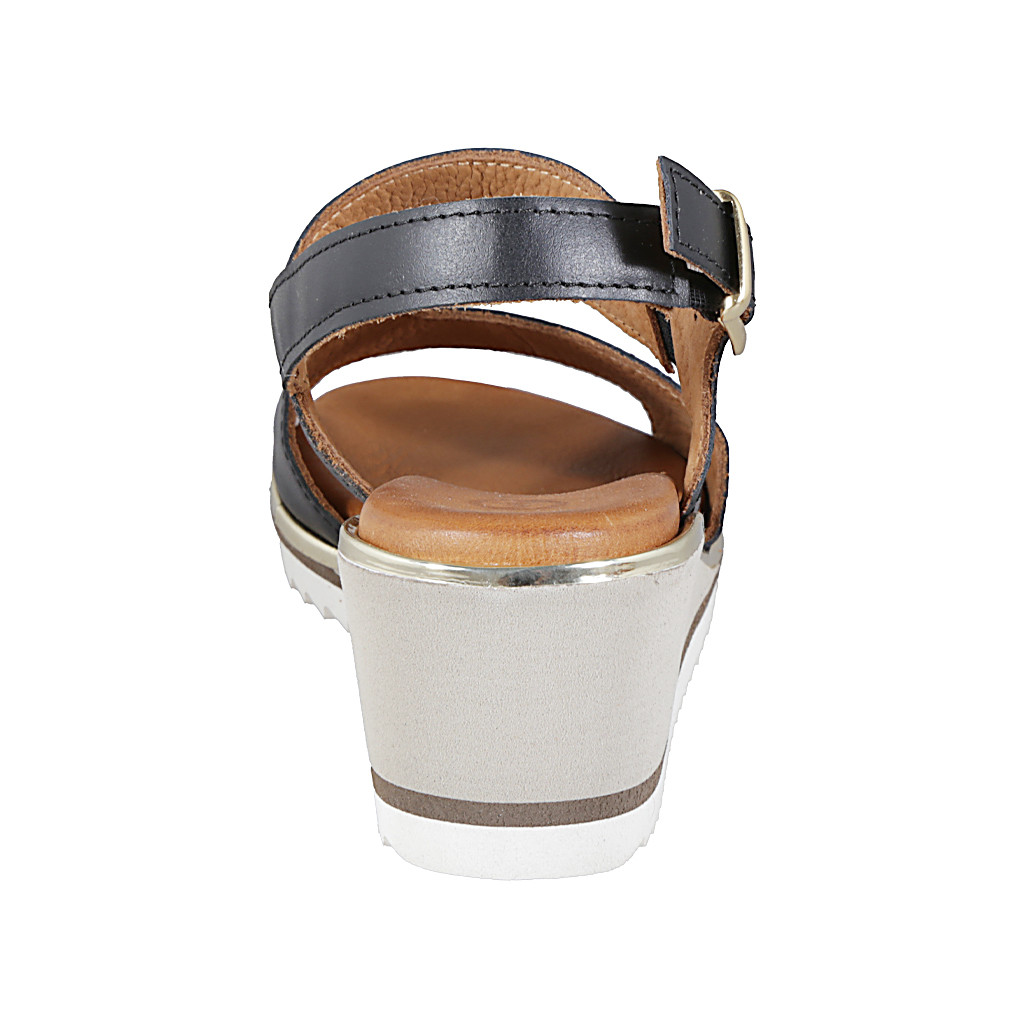 Damensandale mit Diagonal-Riemchen aus cogancbraunem Leder mit Gummiband, Keilabsatz 6