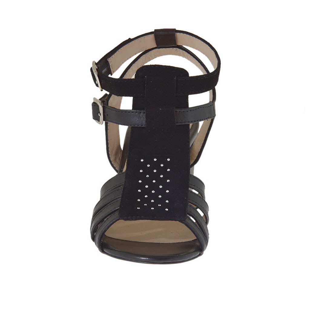 Damensandale mit Riem aus schwarzem bedrucktem Lackleder Absatz 1