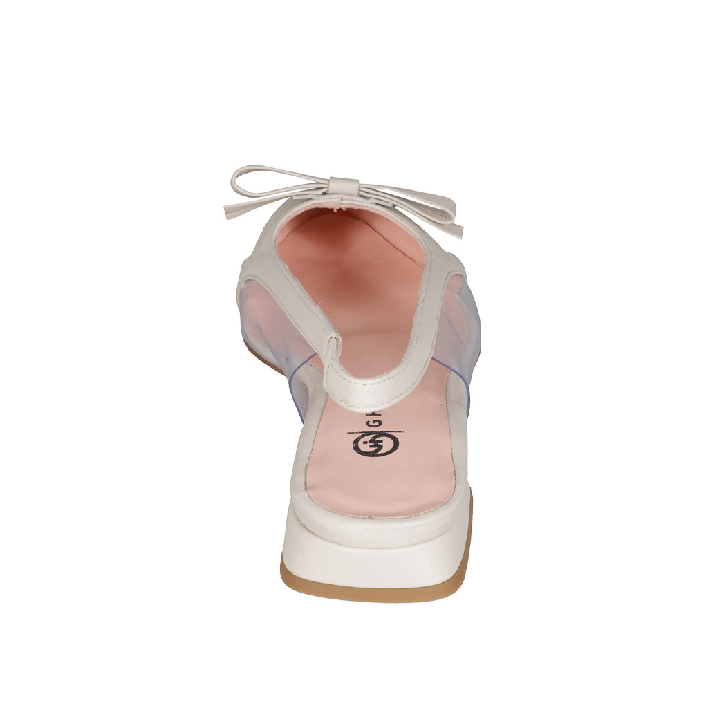 Slingback für Damen aus beigem Leder und transparentem Vinyl mit Gummiband und Schleife Absatz 2