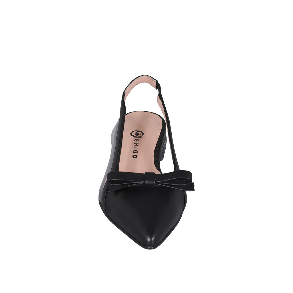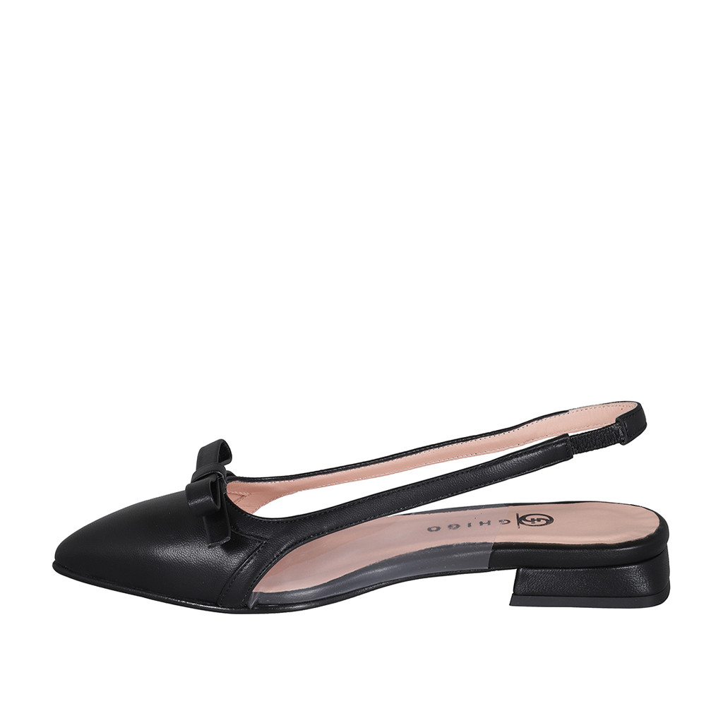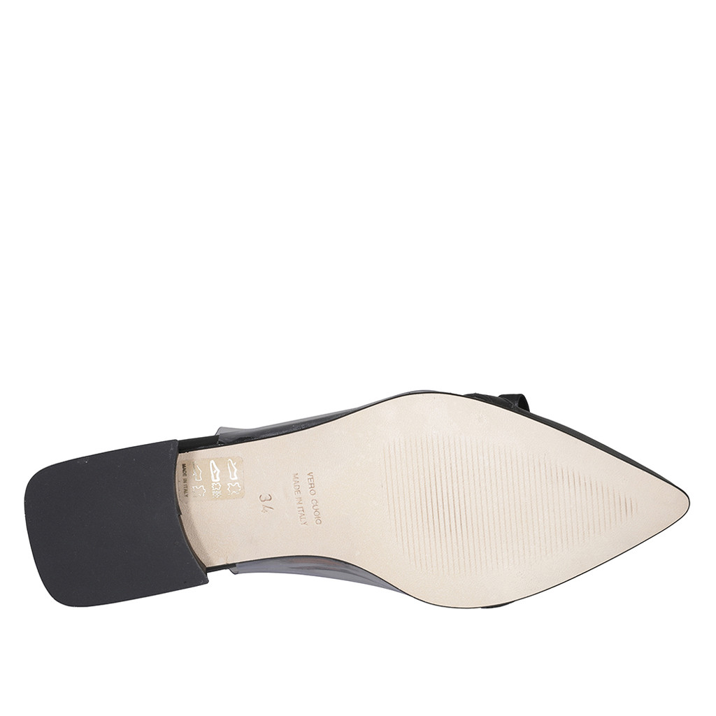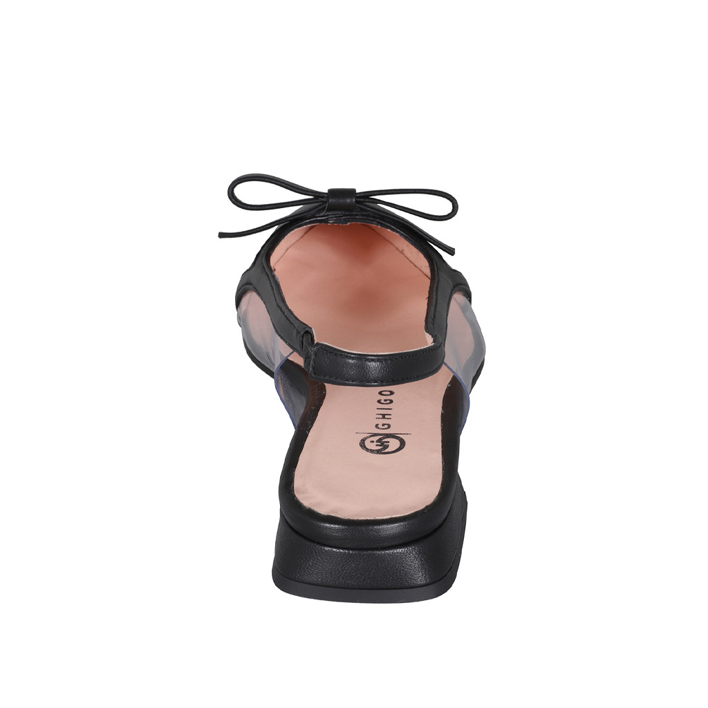 Slingback für Damen aus schwarzem Leder und transparentem Vinyl mit Gummiband und Schleife Absatz 2
