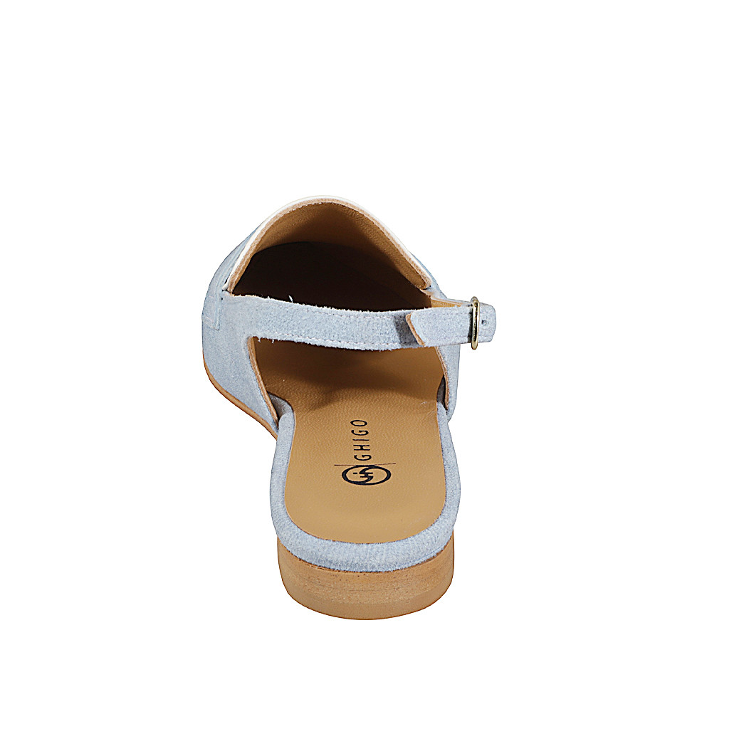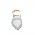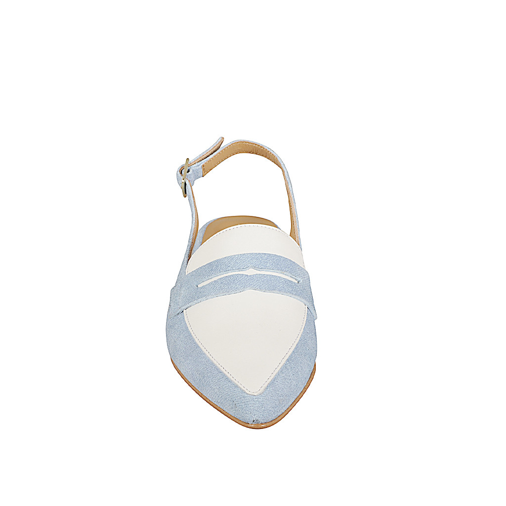 Spitzige Slingback-Pumps für Damen aus Wildleder mit Jeanseffekt und weißem Leder mit Absatz 2