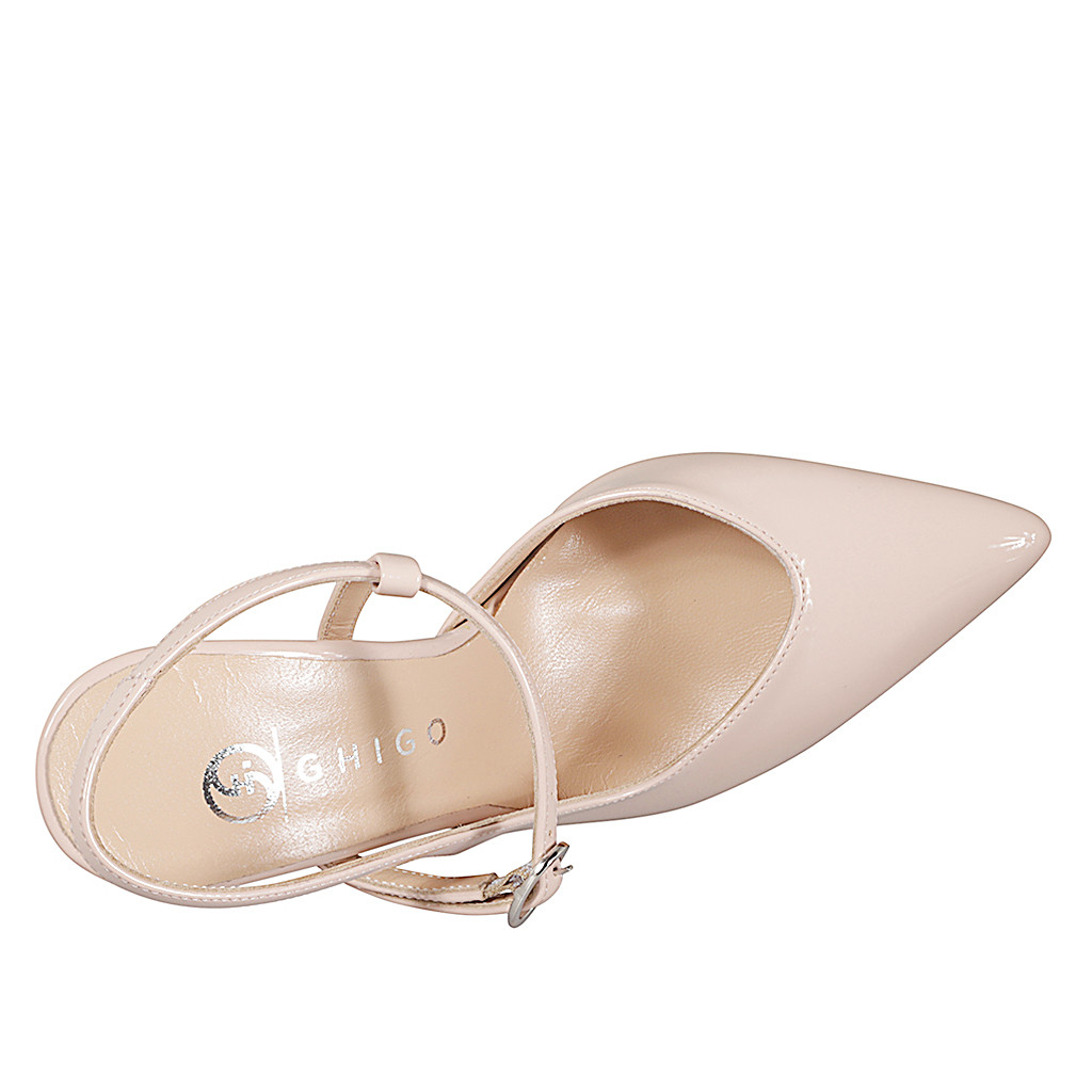 Spitzer Mary-Jane-Slingback für Damen aus nudefarbenem Lackleder mit Riemchen Absatz 9