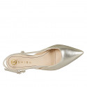 Spitzer Damenslingback ohne Verzierungen aus laminiertem platinfarbenem Leder mit Absatz 5