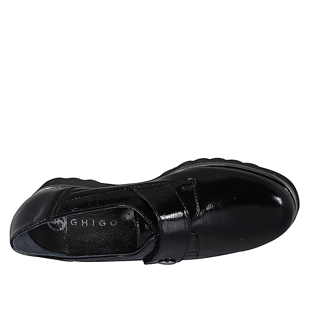 Slingback für Damen aus schwarzem Leder und transparentem Vinyl mit Gummiband und Schleife Absatz 2