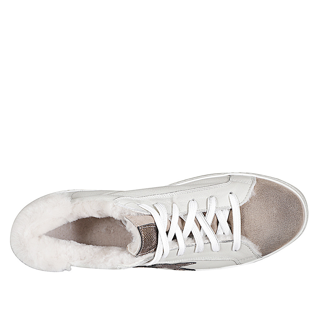 Offener Damenschuh mit Knöchelriemchen aus nudefarbenem Leder und Stilettoabsatz 10