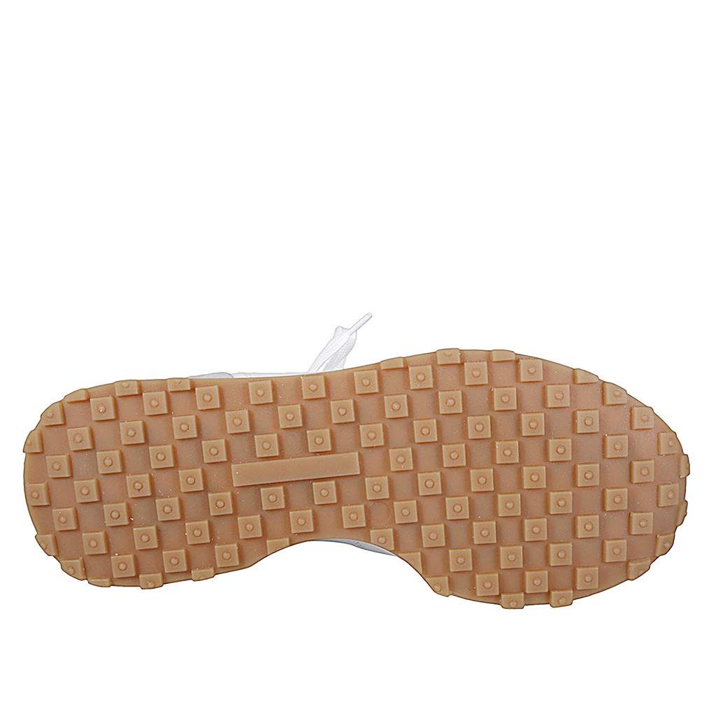 Damen-Sneakerschuhe mit Schnürsenkeln und abnehmbarer Innensohle aus weißem und orangen Leder und grauem Wildleder Keilabsatz 4