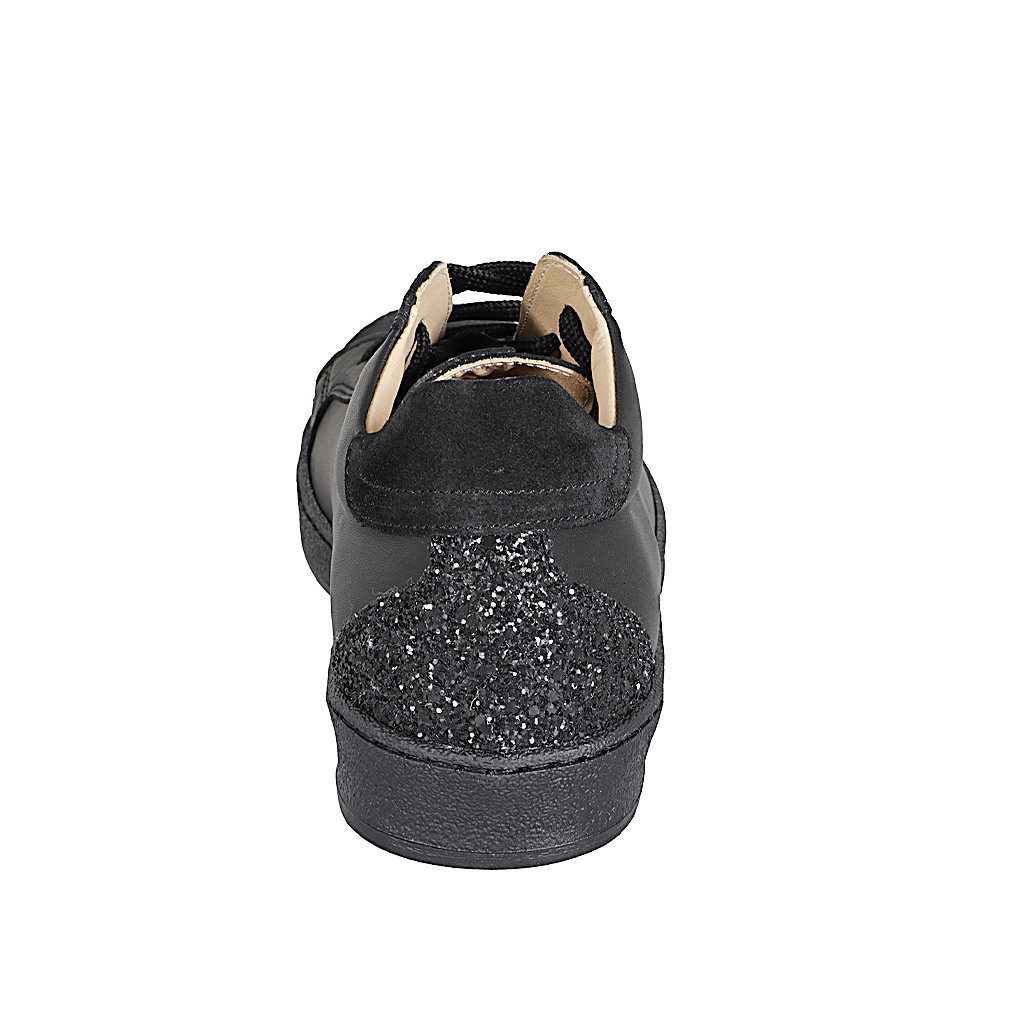 Sneaker mit abnehmbarer Innensohle aus schwarzem Leder mit Glitter und aus schwarzem Wildleder Keilabsatz 3