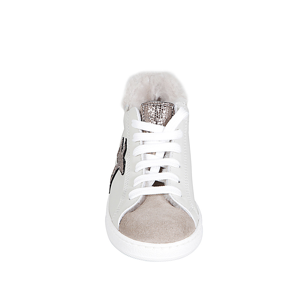 Sneaker mit abnehmbarer Innensohle aus elfenbeinfarbenem und bordeauxfarbenem Leder Keilabsatz 4