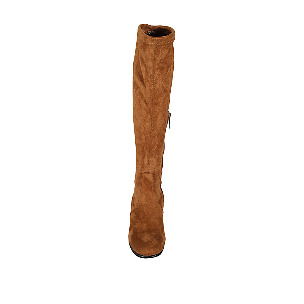 Texanischer Damenstiefel mit halbem Reißverschluss aus beigem Leder und perforiertem Leder Absatz 5