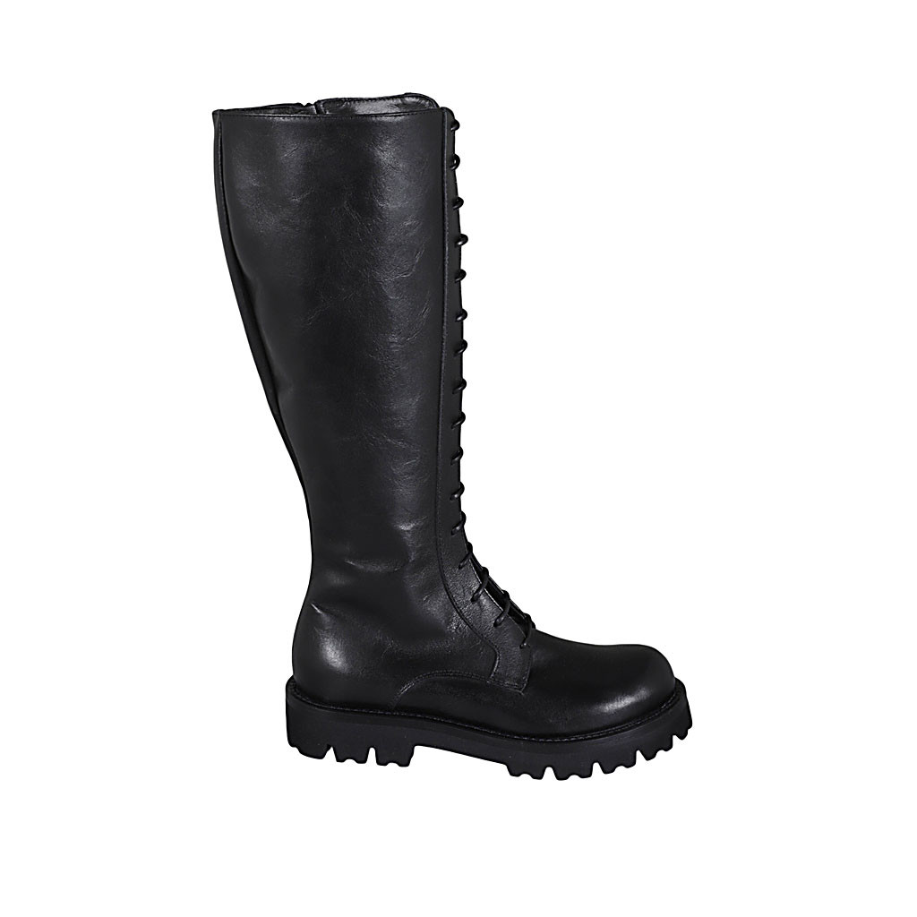 Damenspringerstiefel mit Schnürsenkeln und Reißverschluss aus schwarzem Leder Absatz 3