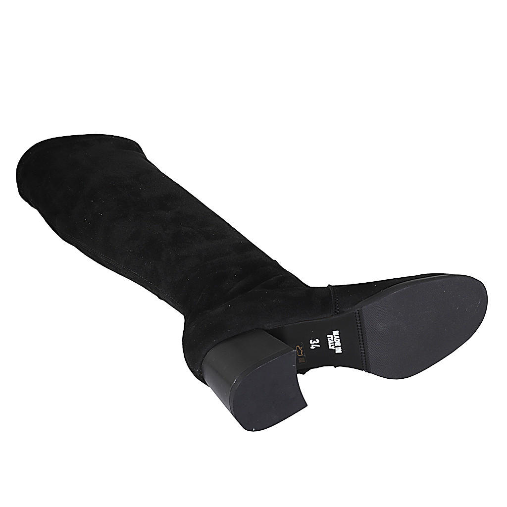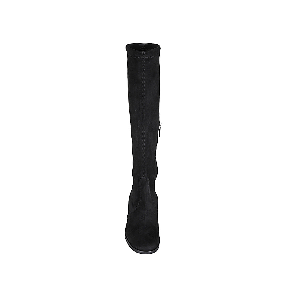 Damenstiefel mit halbem Reißverschluß aus schwarzem elastischem Material und Wildleder Absatz 5