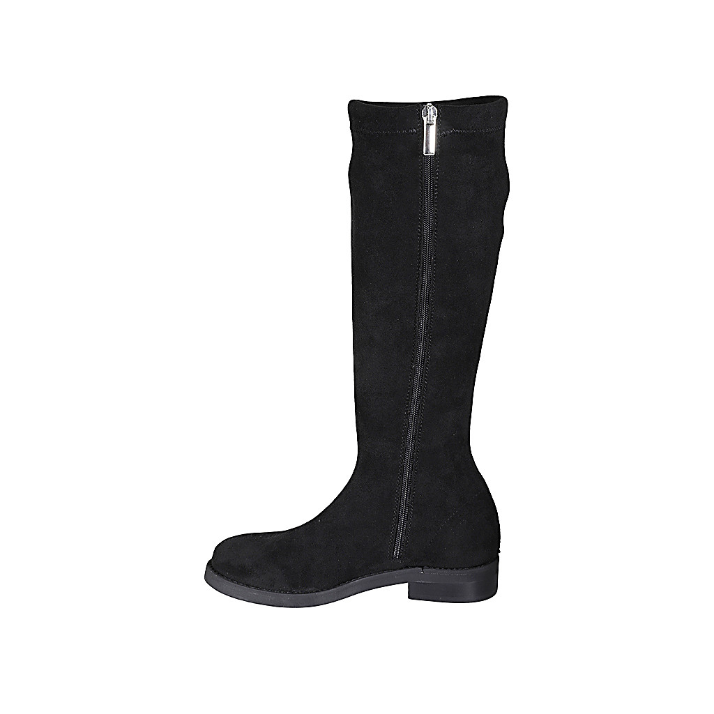 Damenstiefel mit Reißverschluss aus schwarzem Wildleder und elastischem Material Absatz 3