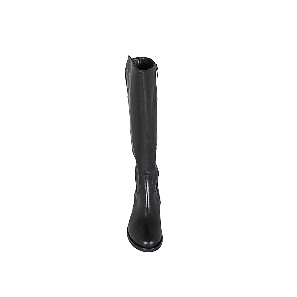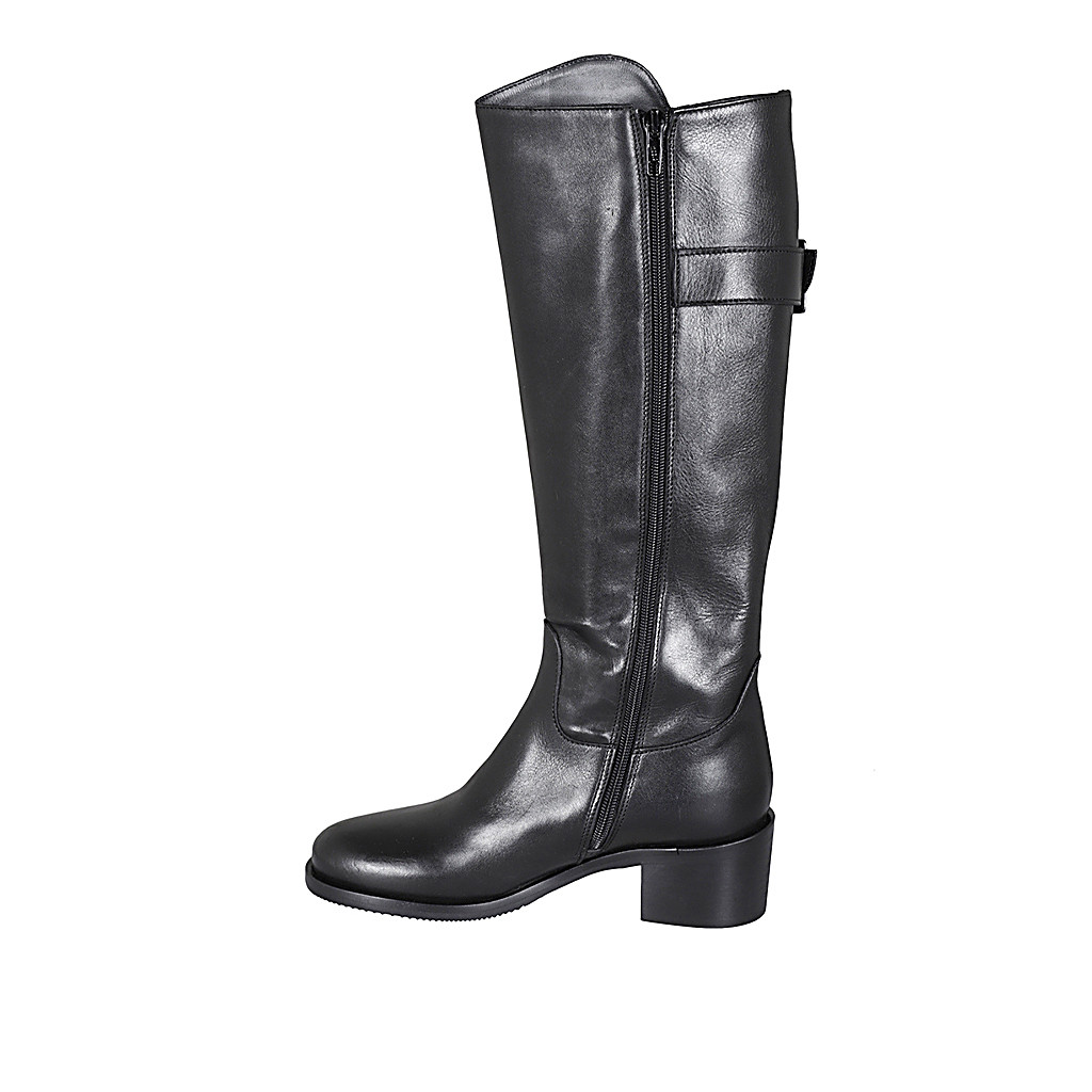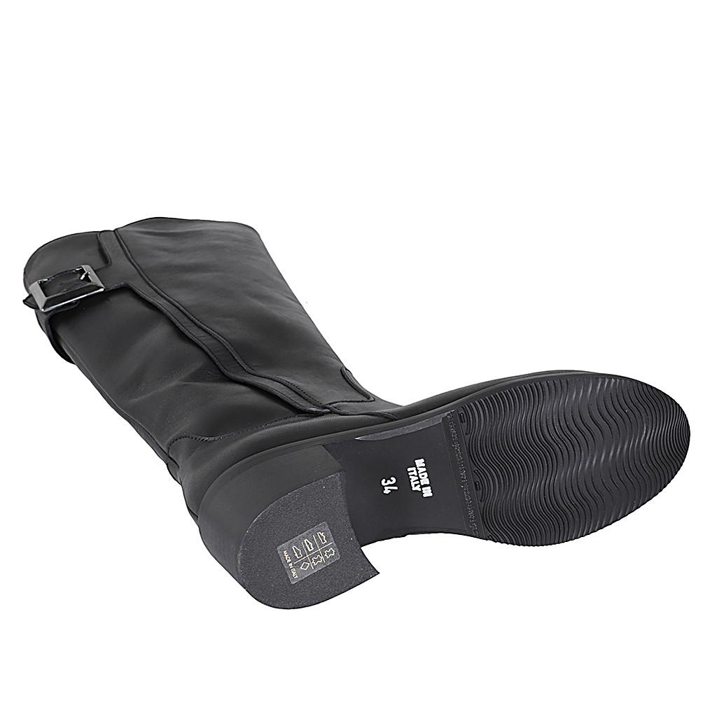 Damenstiefel mit Schnalle und Reißverschluss aus schwarzem Leder Absatz 5