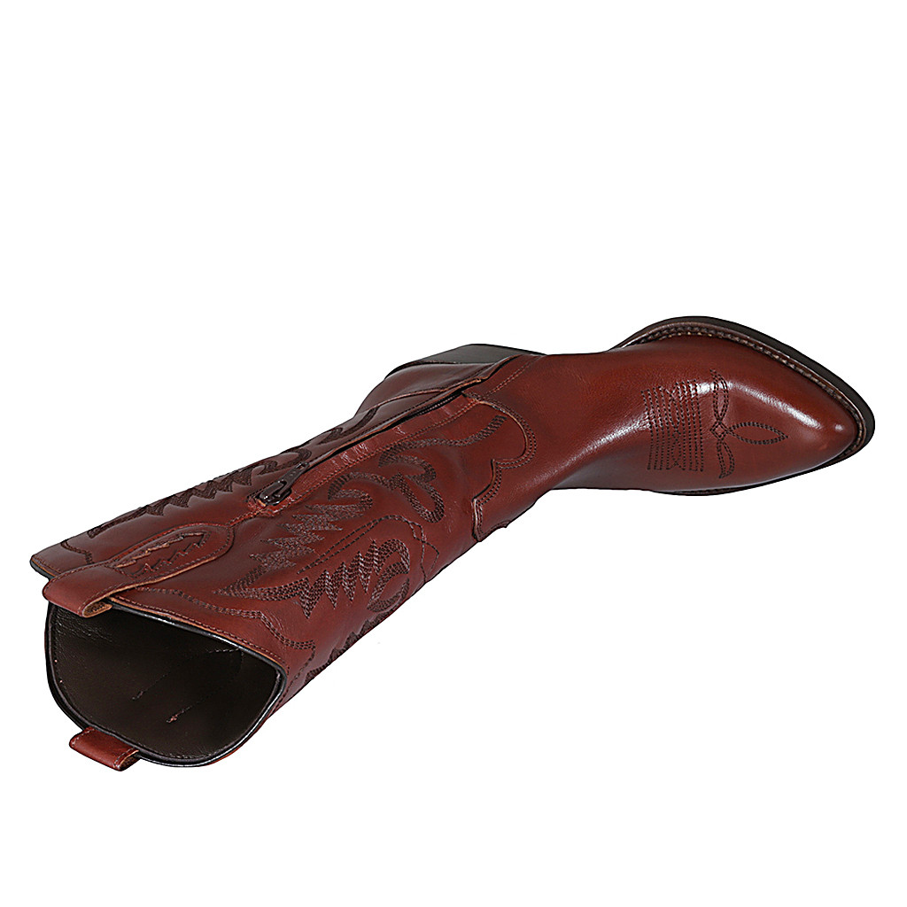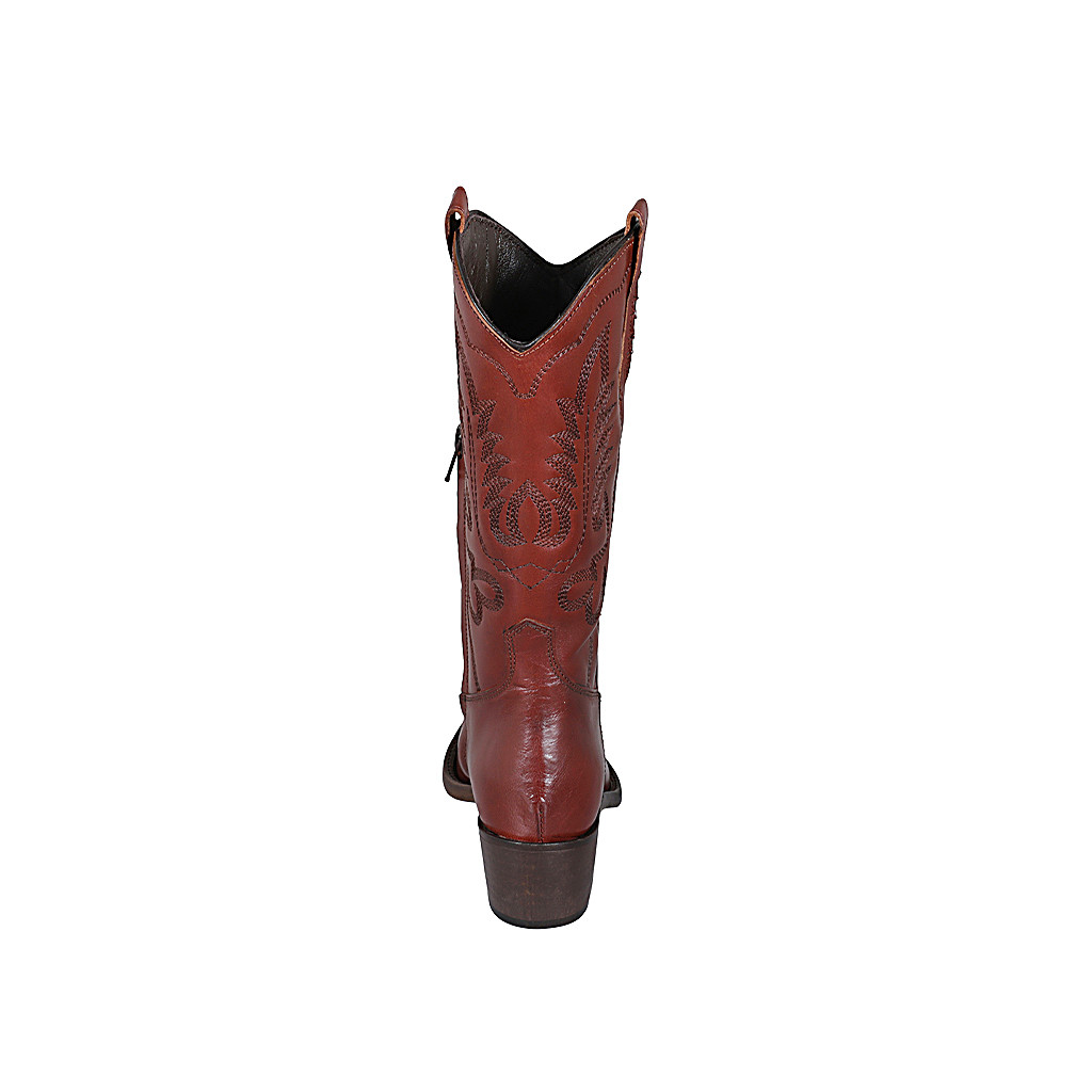 Texanischer Damenstiefel mit halbem Reißverschluss und Bestickung aus cognacbraunem Leder Absatz 5