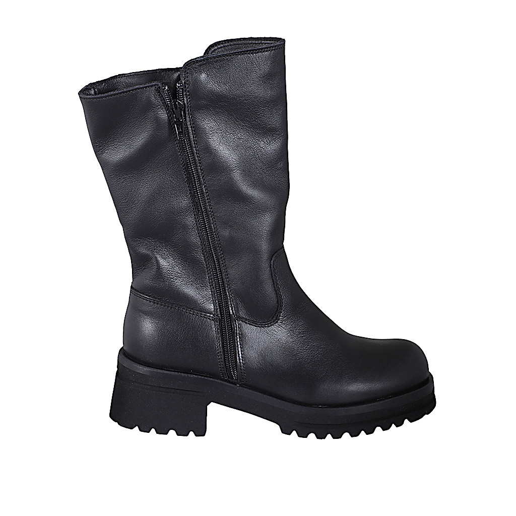 Runder Pumpschuh für Damen aus blauem Leder Absatz 6
