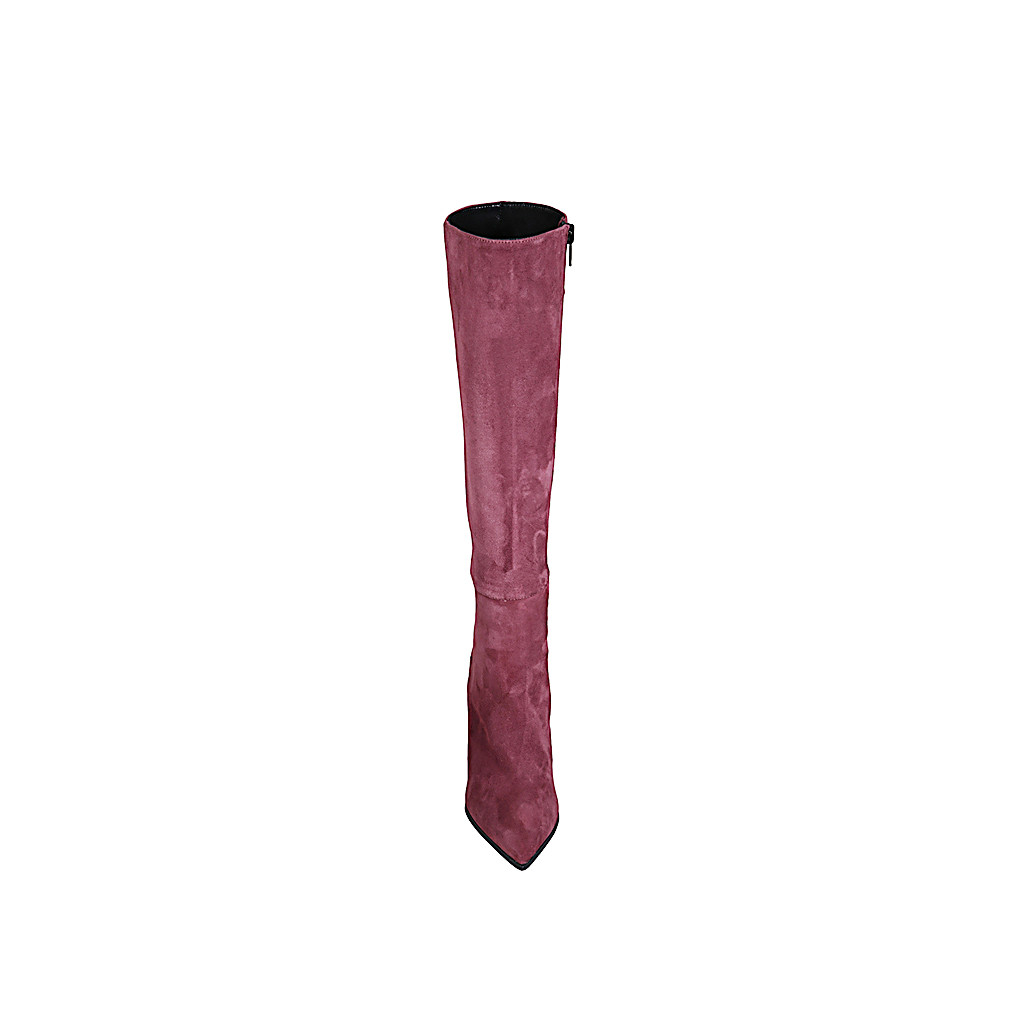 Damenstiefel aus cognacbraunem Wildleder mit Reißverschluss Absatz 5