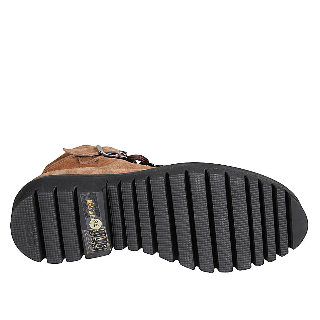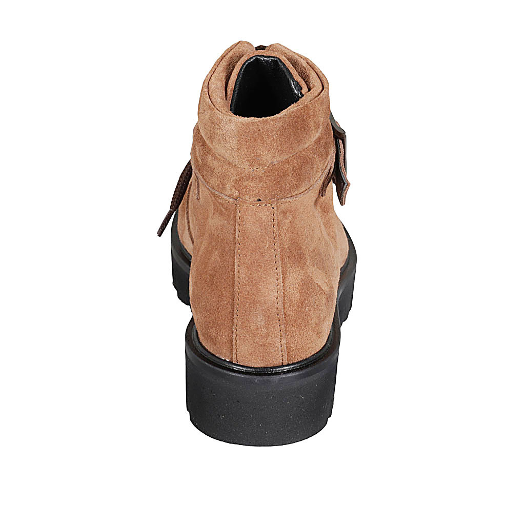 Damenstiefelette mit Schnürsenkeln und Schnalle aus cognacbraunem Wildleder Absatz 4